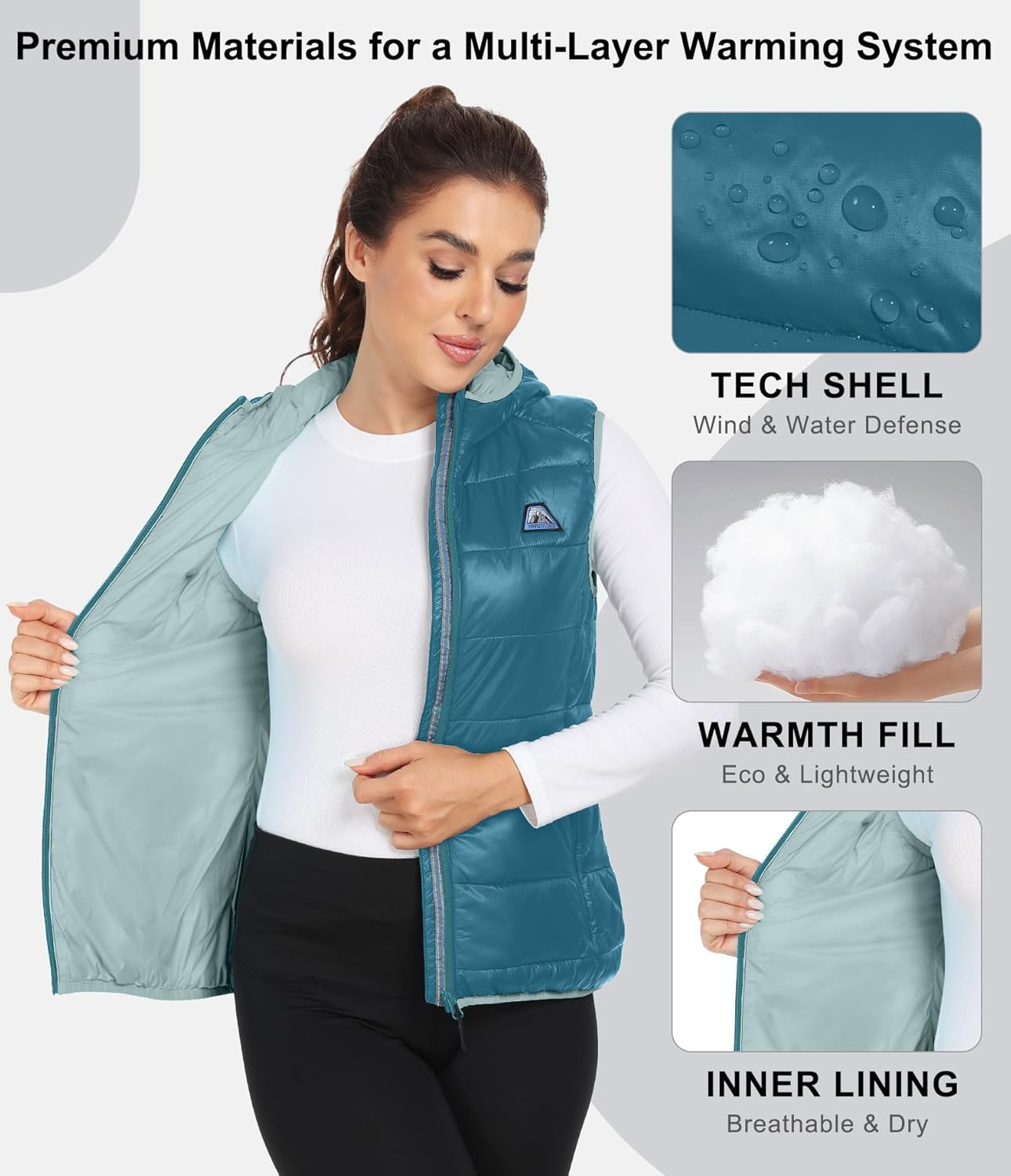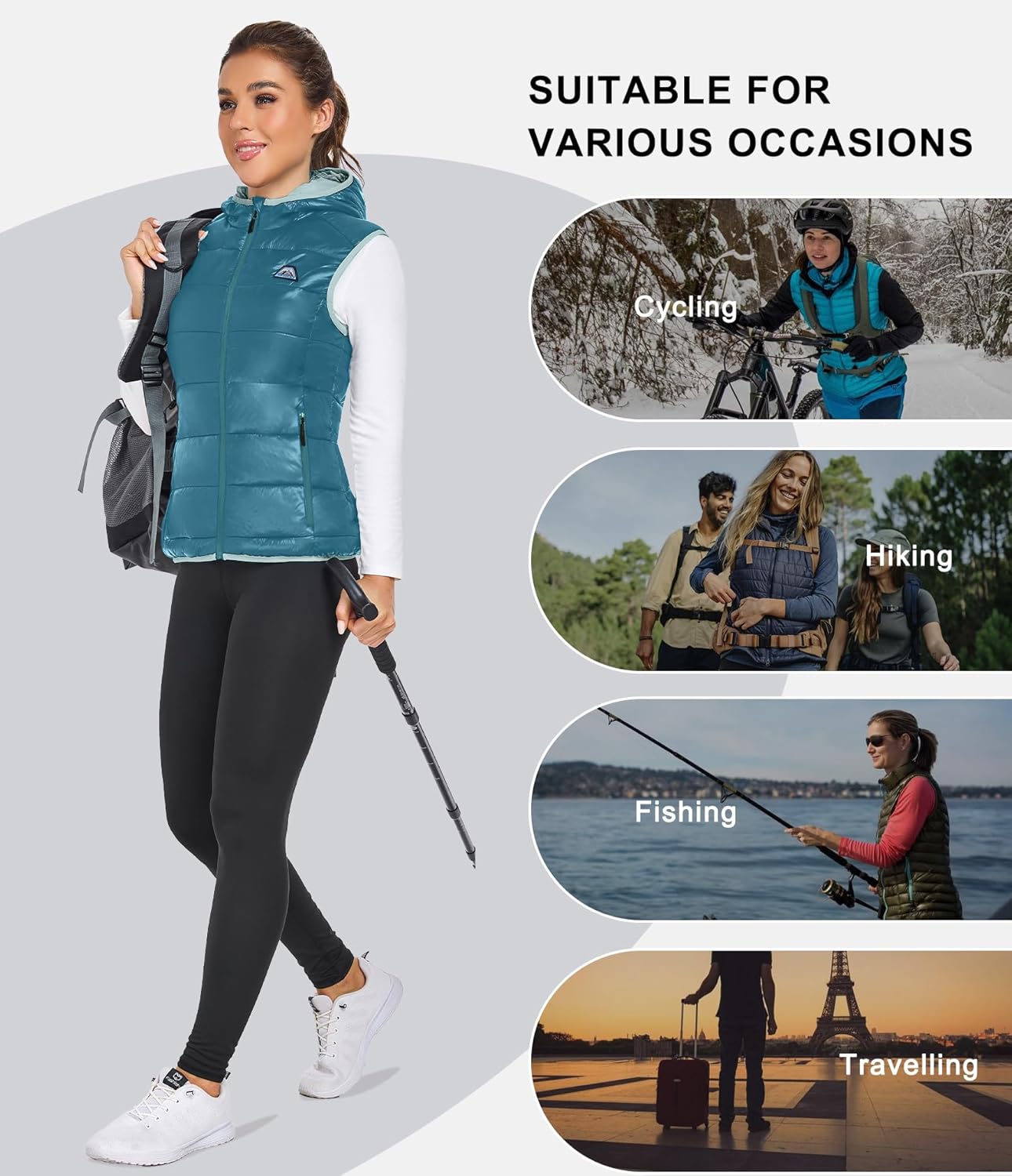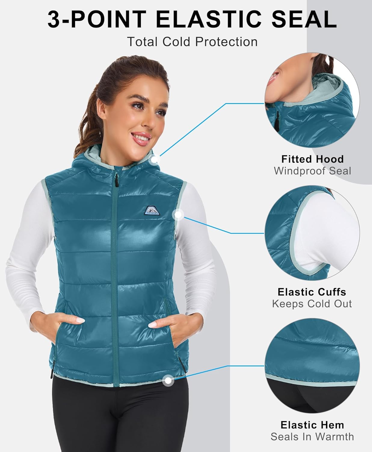 Mapamyumco Women’s Lightweight Puffer Vest with Hood, Water-Resistant Sleeveless Jacket for Hiking Ski
