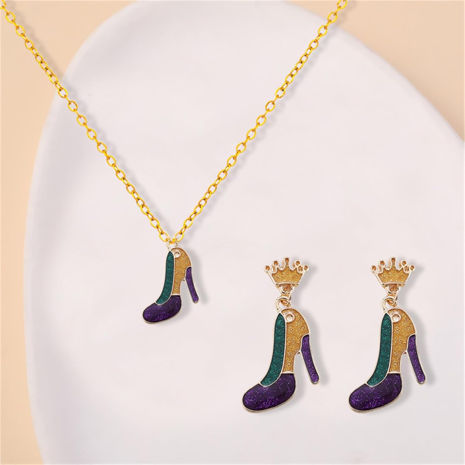 Mardi Gras Earring And Necklaces Sets for Women Trendy Champagne Bottle Mask Hat Crown Stud Earrings Creative Carnival Pendant Necklaces Fat Tuesday Holiday Jewelry Gifts