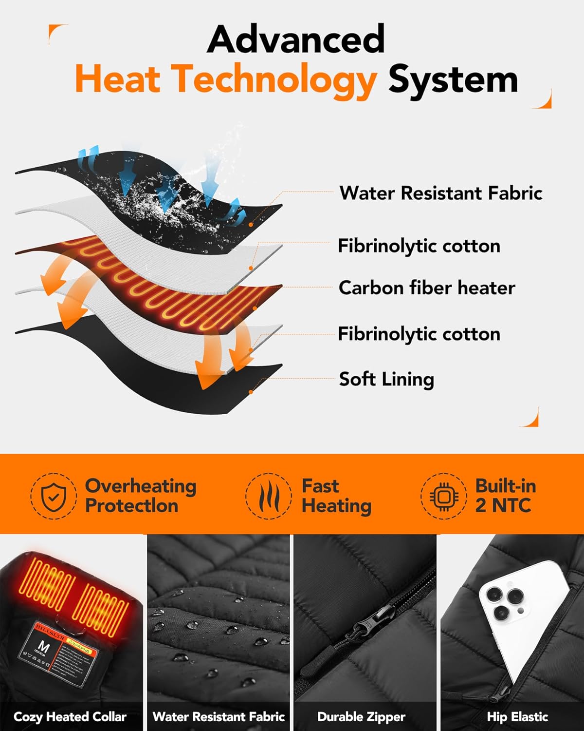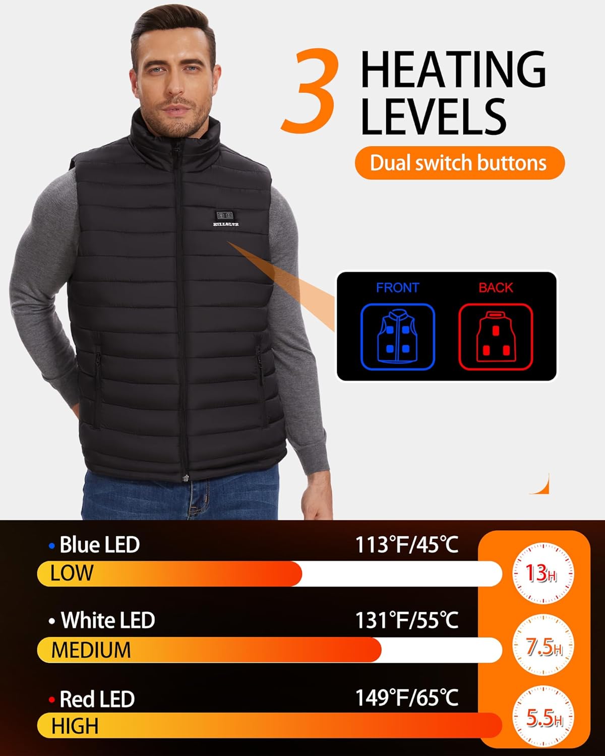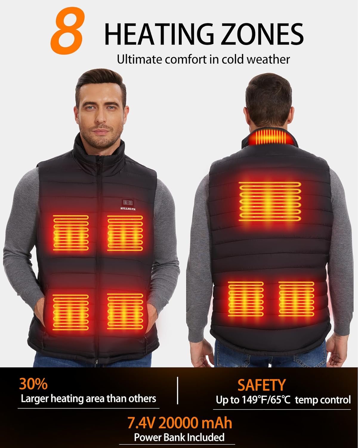 Men’s Heated Vest with 20000mAh 7.4V Rechargeable Battery Pack – Electric Heating Vest for Outdoor Activities