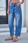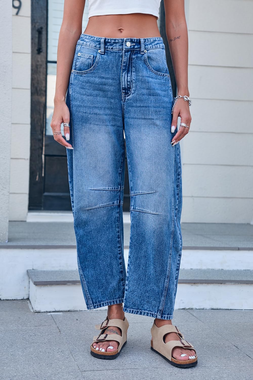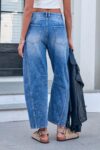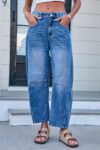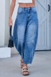 Mid Rise Barrel Jeans for Women Wide Leg Mid Waist Cropped Denim Pants Y2k Baggy Boyfriend Jeans with Pockets