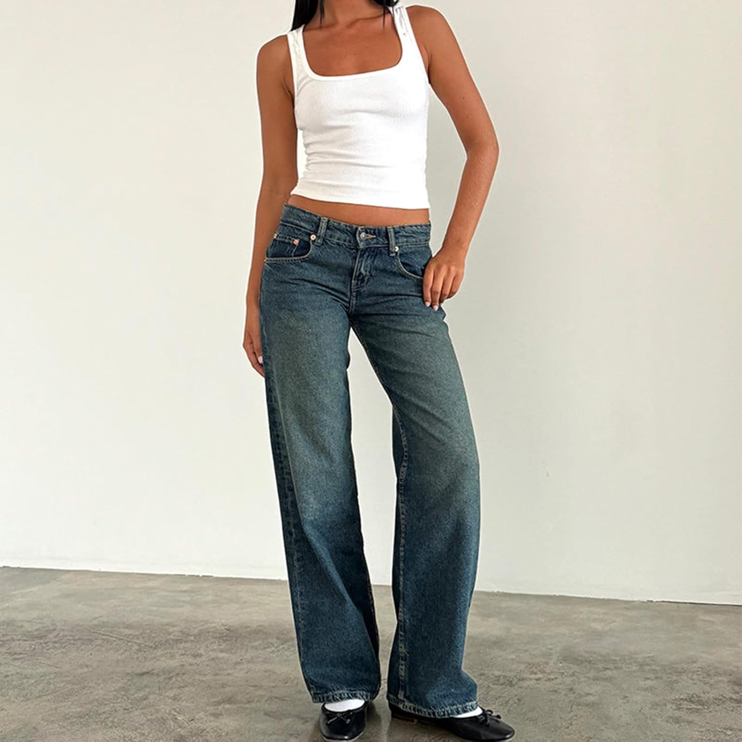 Mxiqqpltky Low Rise Jeans for Women Mom Jeans