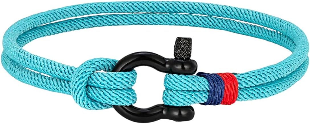 New 2026 Black Stainless Steel Horseshoe Buckle Bracelet For Men Women Navy Blue Rope Survival Couple Jewelry Fashion Accessories Creative Gift