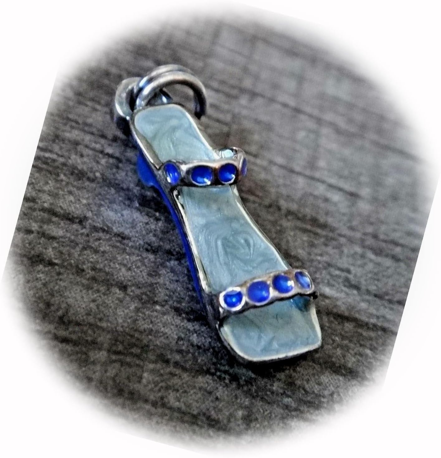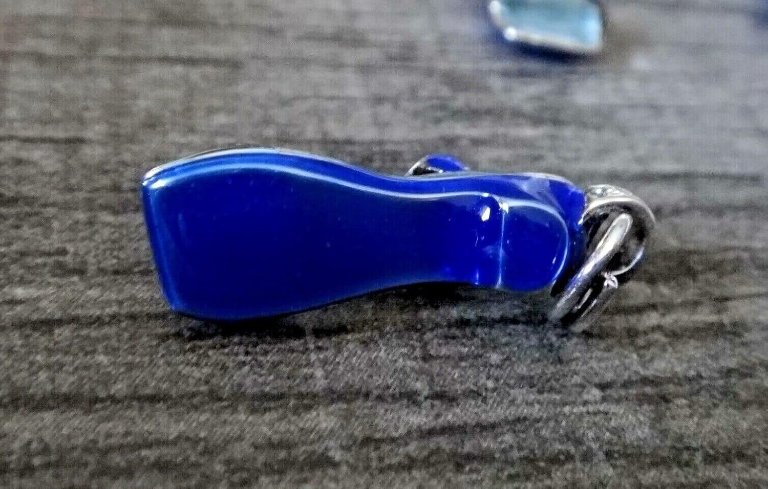 Sterling Silver 20x7mm Dark & Lt Blue Enamel Sandal Shoe with crystals Charm