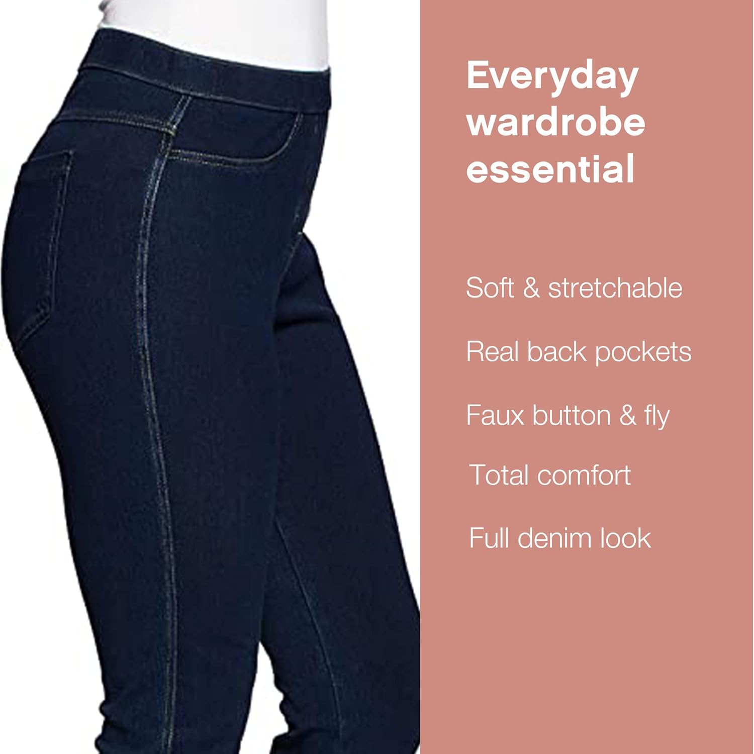 No Nonsense Classic Denim Leggings-Jeggings for Women with Real Back Pockets, High Waisted Stretch Jeans