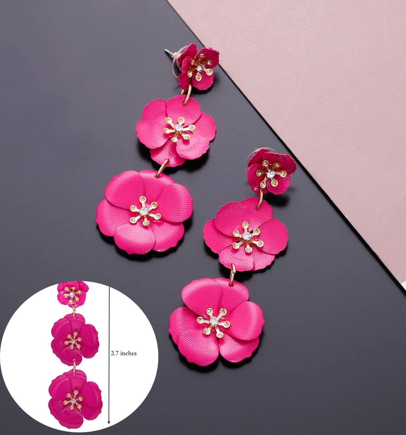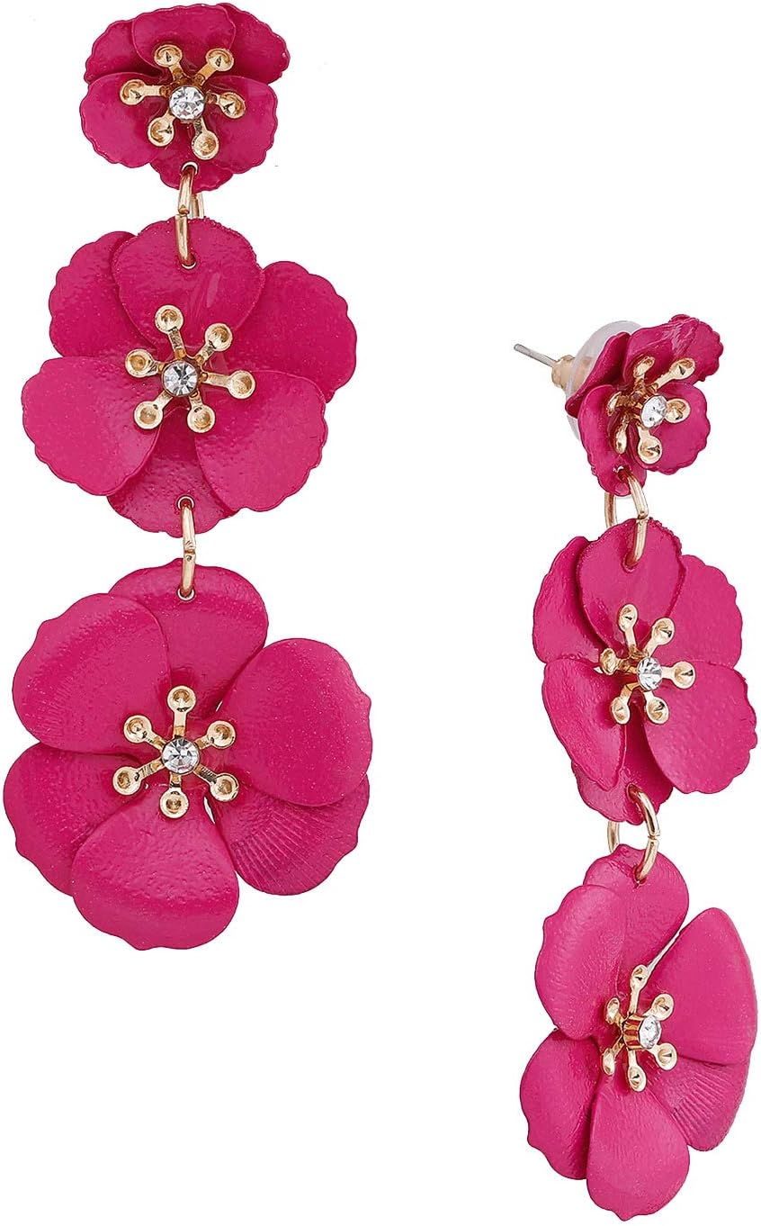 NVENF Flower Dangle Earrings Tiered Triple Floral Drop Stud Earrings Ear Drop for Parties