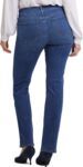 The easy, figure-elongating construction of the NYDJ Marilyn Straight Jeans pairs well with everything, thanks to a flattering waist and a versatile straight-leg fit. Lift Tuck Technology uses a proprietary slimming panel with a patented crisscross design to shape and support your curves for an always-sleek silhouette. Made to flatten in the front and flatter curves in the back. Finished with classic five-pocket styling, zip fly, and button closure. Machine wash cold and line dry.