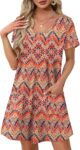 OFEEFAN Summer Dresses for Women 2025 Loose V Neck Short Sleeve Casual T Shirt Dress Sundresses Swimsuit Coverup with Pockets