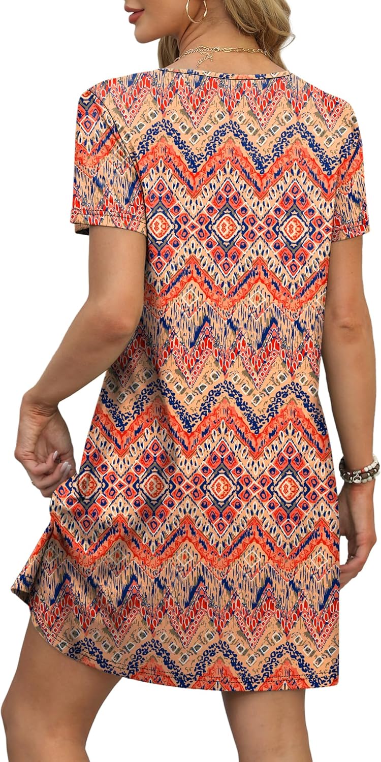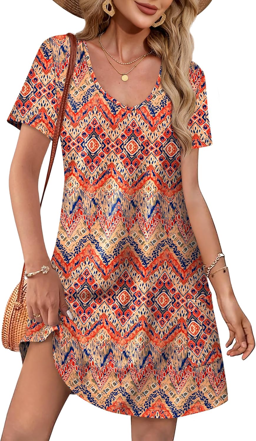 OFEEFAN Summer Dresses for Women Floral Casual V Neck T Shirt Dress Sundresses