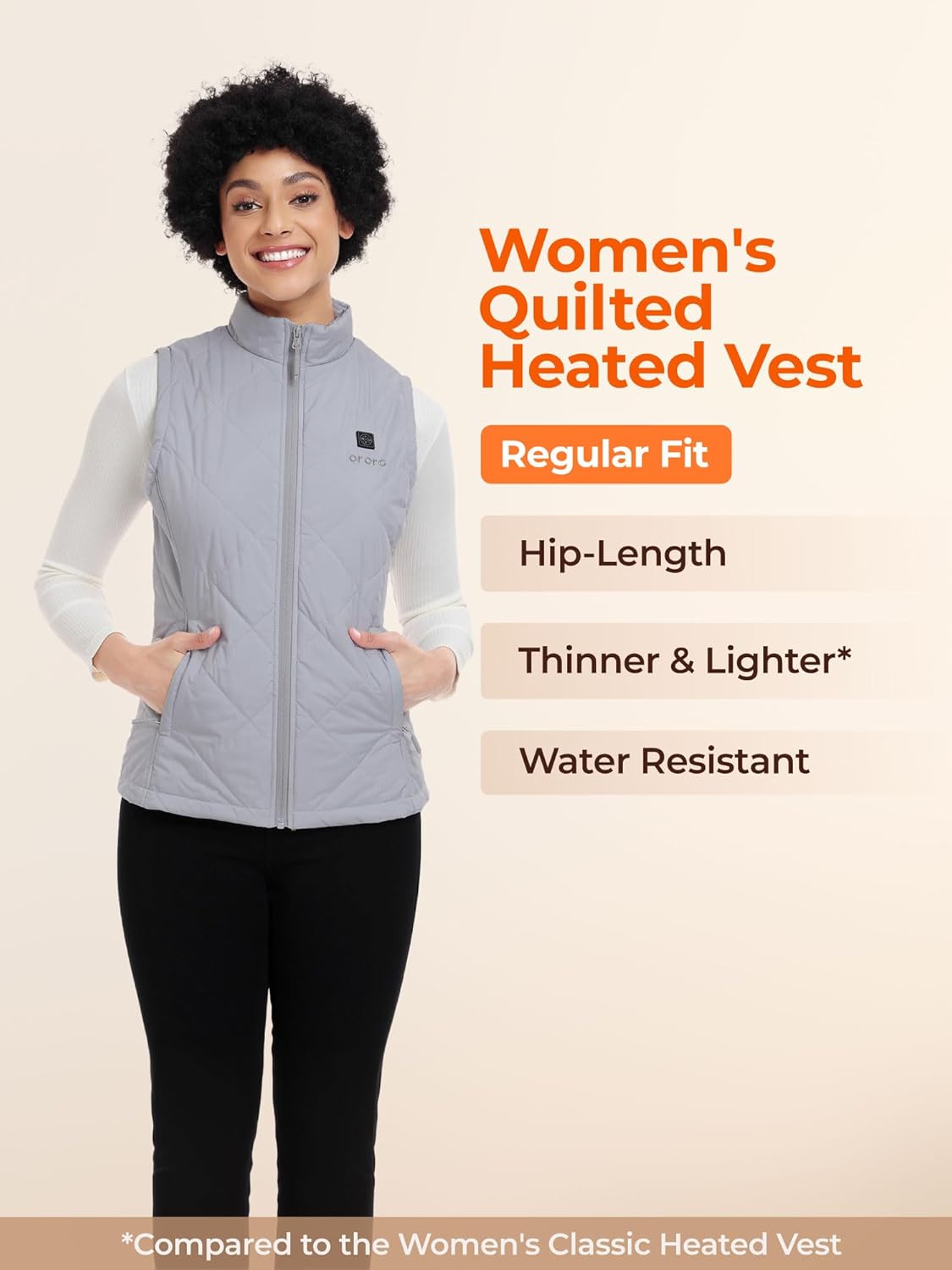 ORORO Quilted Heated Vest for Women, Lightweight Quilted Heating Vest with Battery (Charger Not Included)