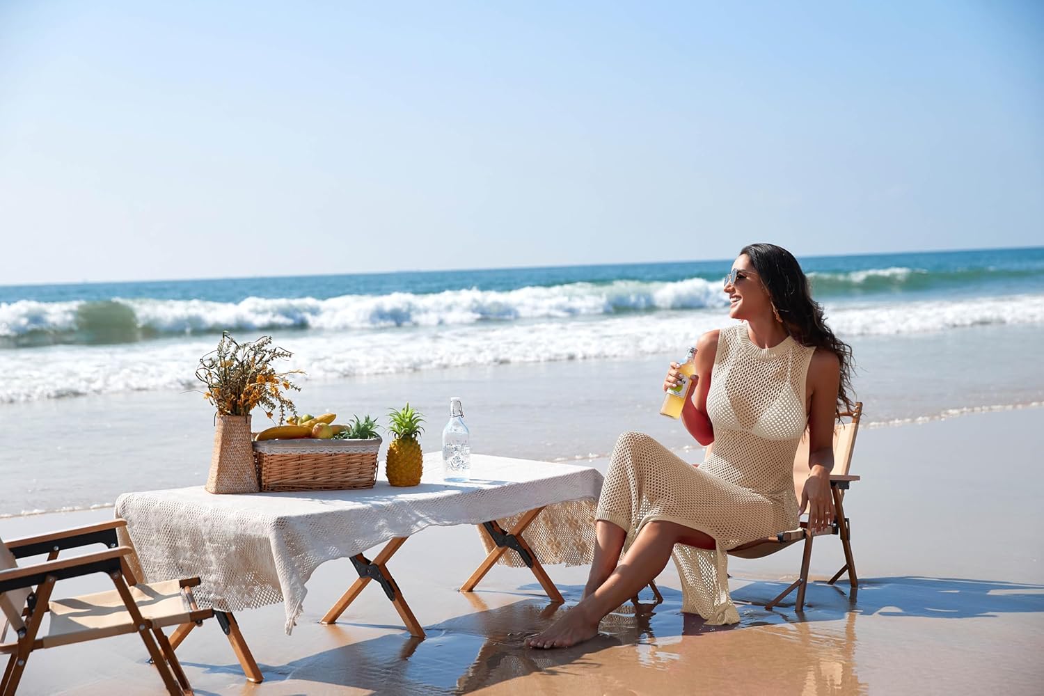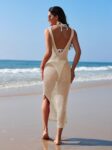 Pink Queen Women Swimsuit Cover Up Hollow Out Sleeveless Beach Maxi Dress Side Split Knit Bathing Suit Cover Up for Women