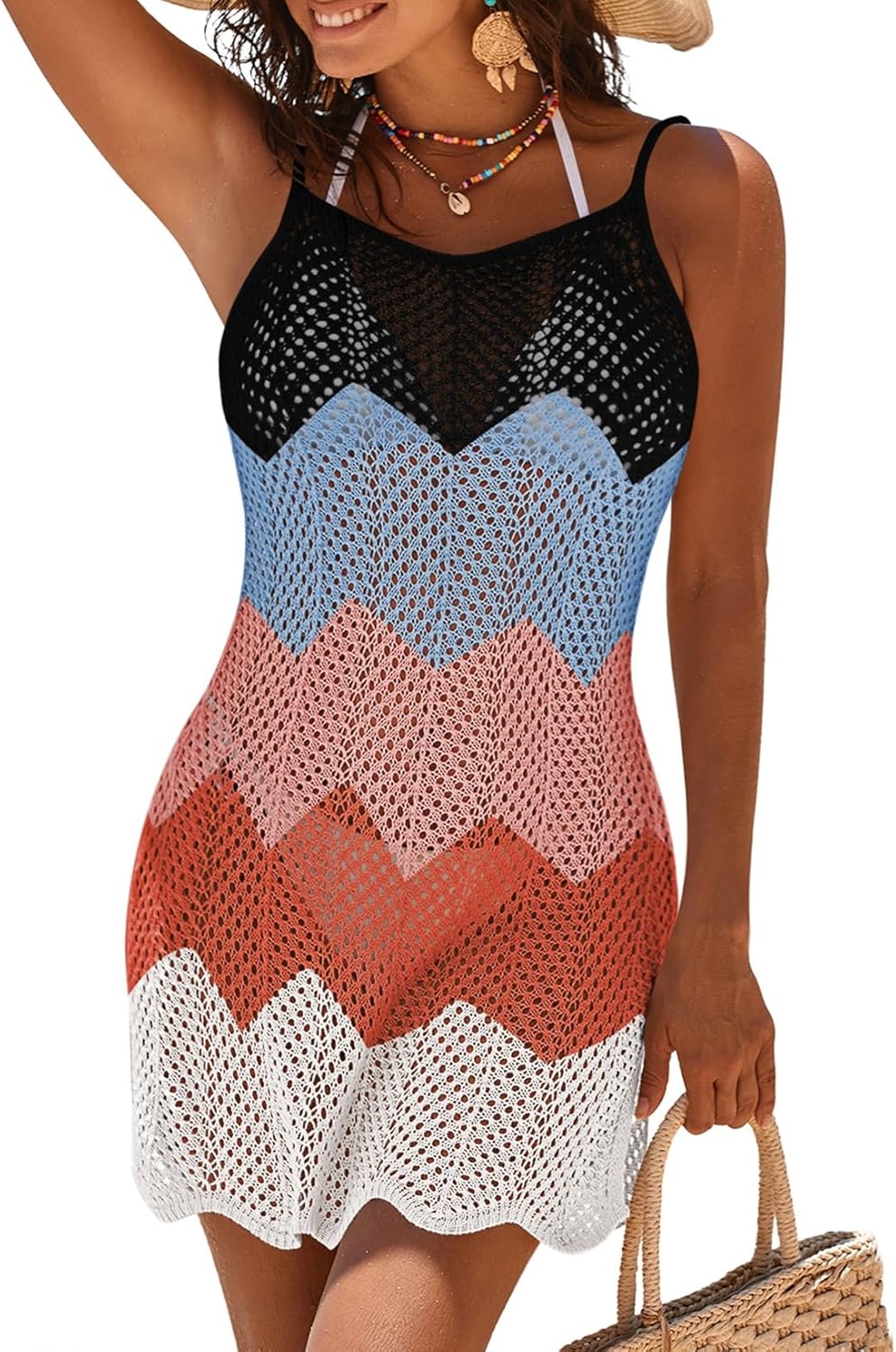 Crochet Bathing Suit Cover Up For Women Sexy Sleeveless Knit Swimsuit Vacation Mini Dresses