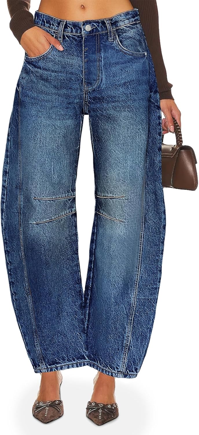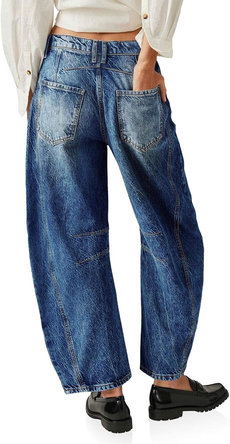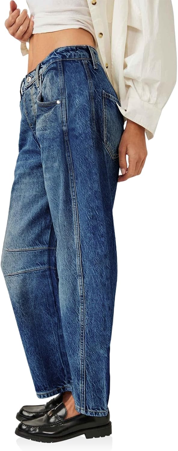 These women’s wide leg boyfriend jeans feature a vintage barrel jeans design, features wide leg that falls to slightly tapered and cropped, frayed hems, adding a touch of retro charm to your wardrobe.