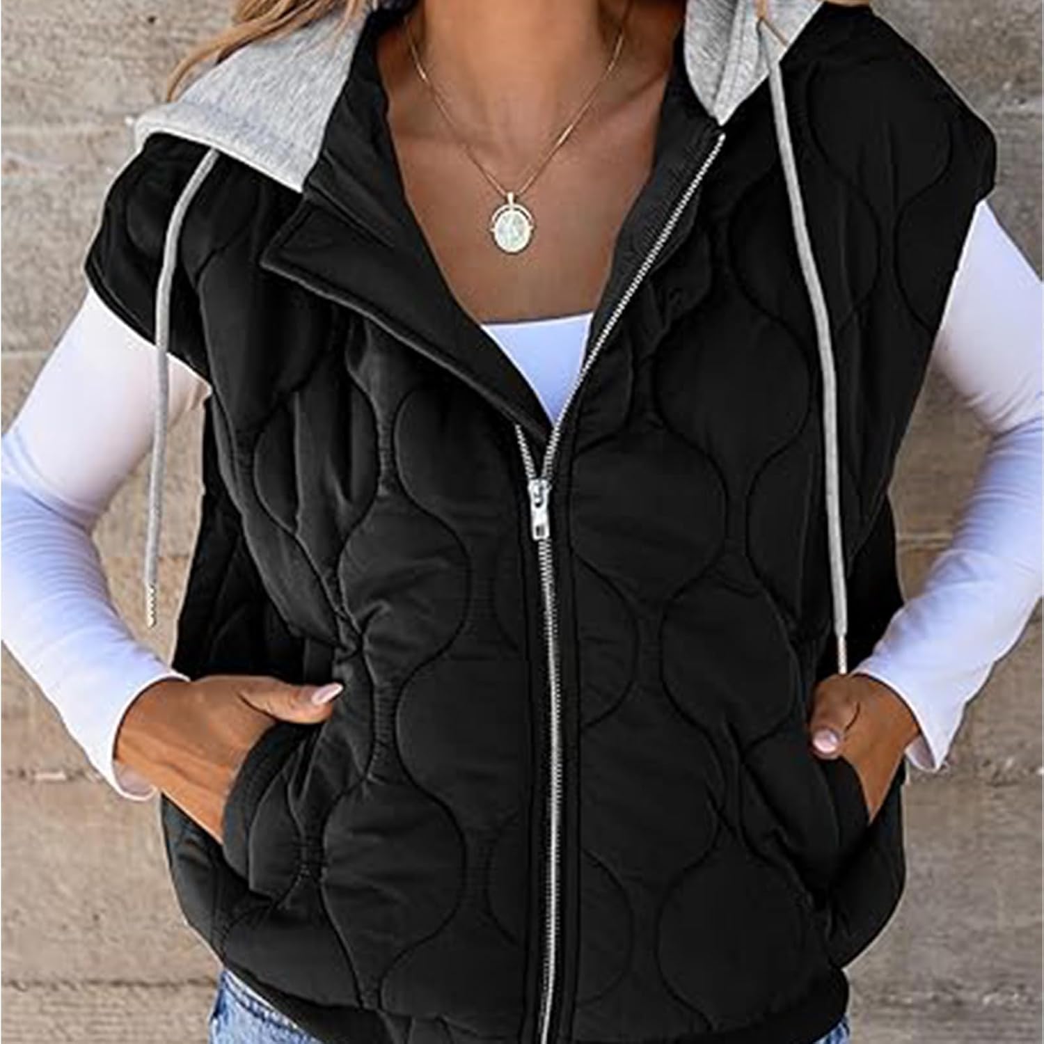 Puffer Vest Women Puffer Vests 2024 Trendy Fall Zip Up Sleeveless Jackets Cap Sleeve Quilted Hooded Tops Winter Coats