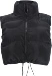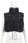 The stand collar of this sleeveless vest for women designed to provide warmth and utility, the sleeveless design for the puffer jacket allows for ease of movement and layering options.