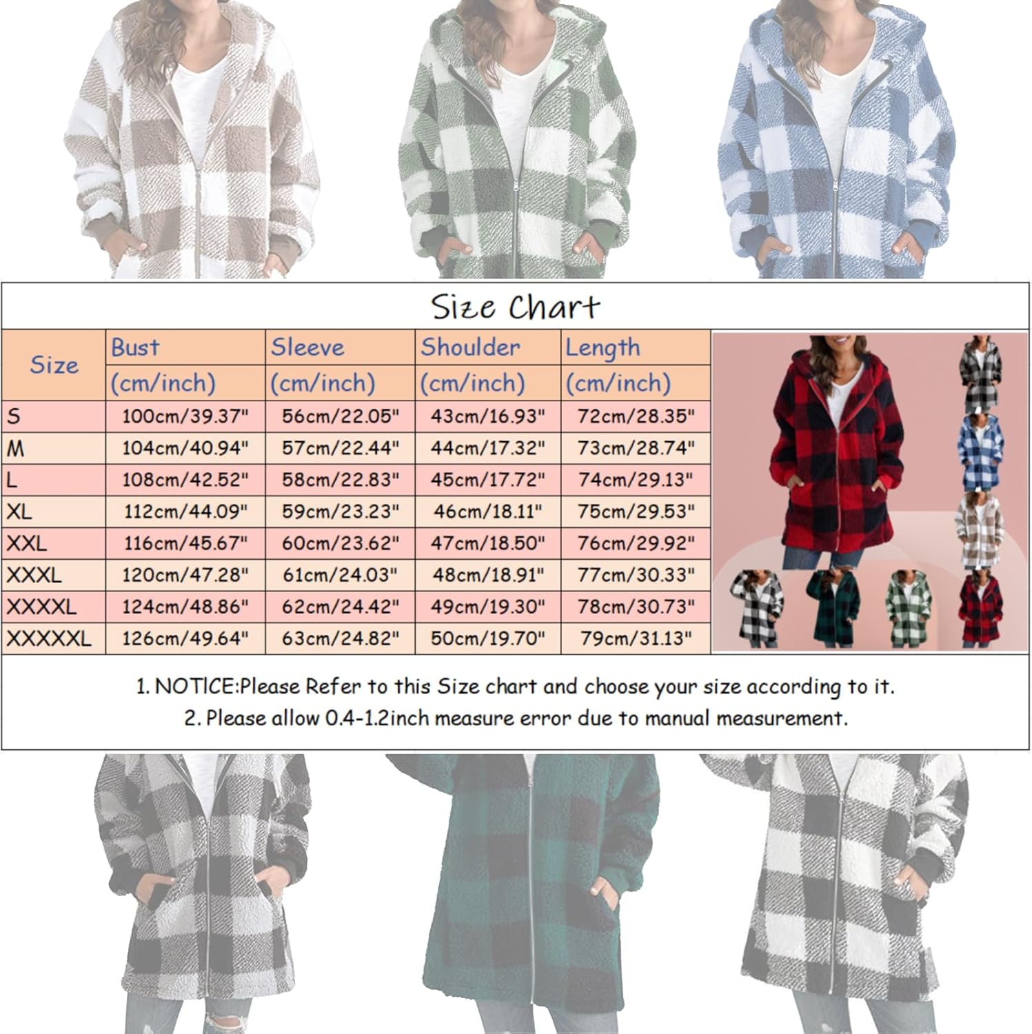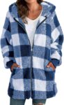 Shackets for Women 2024 Fall Flannel Zip Up Fuzzy Plaid Jacket Plus Size Casual Winter Fleece Long Hoodie with Pocket