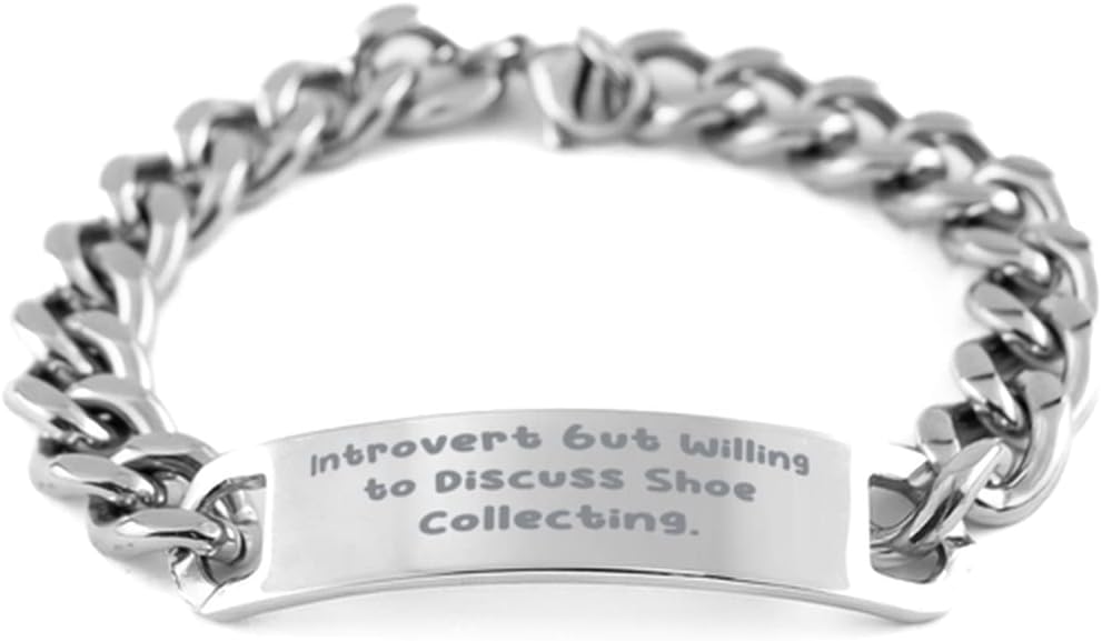 Shoe Collecting for Friends, Introvert but Willing to Discuss, Reusable Shoe Collecting Cuban Chain Bracelet, Engraved Bracelet from