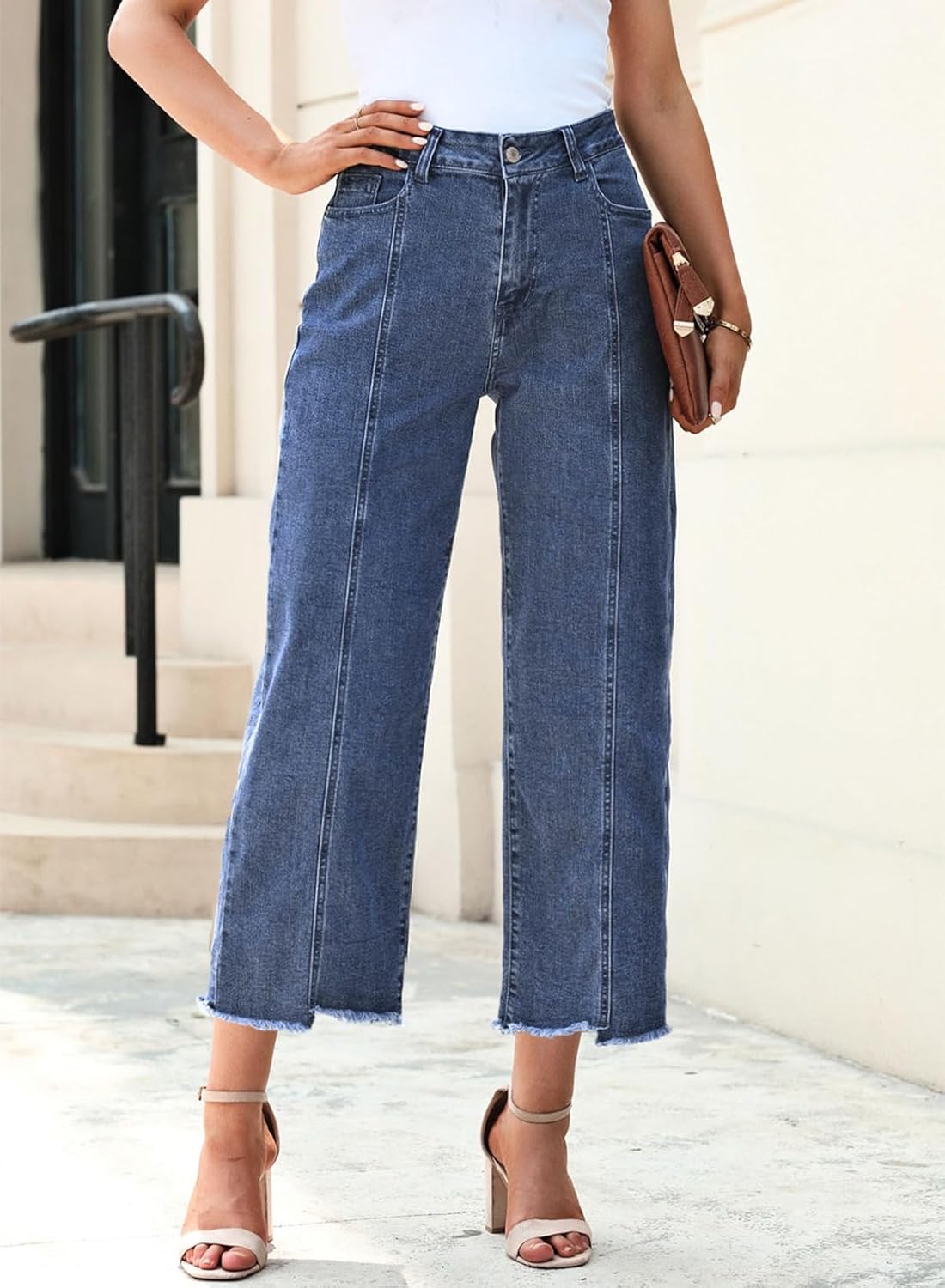 Sidefeel Women’s Jeans High Waisted Wide Leg Loose Fit Straight Leg Zimbaplatinum Cropped Denim Pants