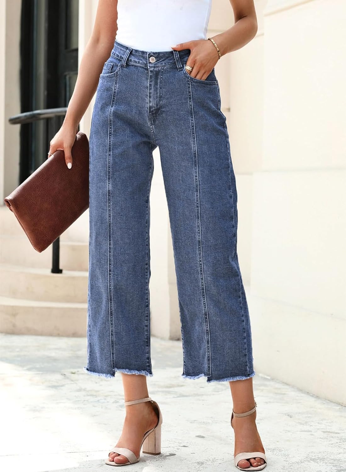Sidefeel Women’s Jeans High Waisted Wide Leg Loose Fit Straight Leg Zimbaplatinum Cropped Denim Pants
