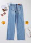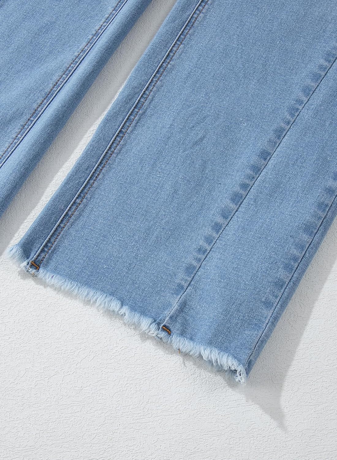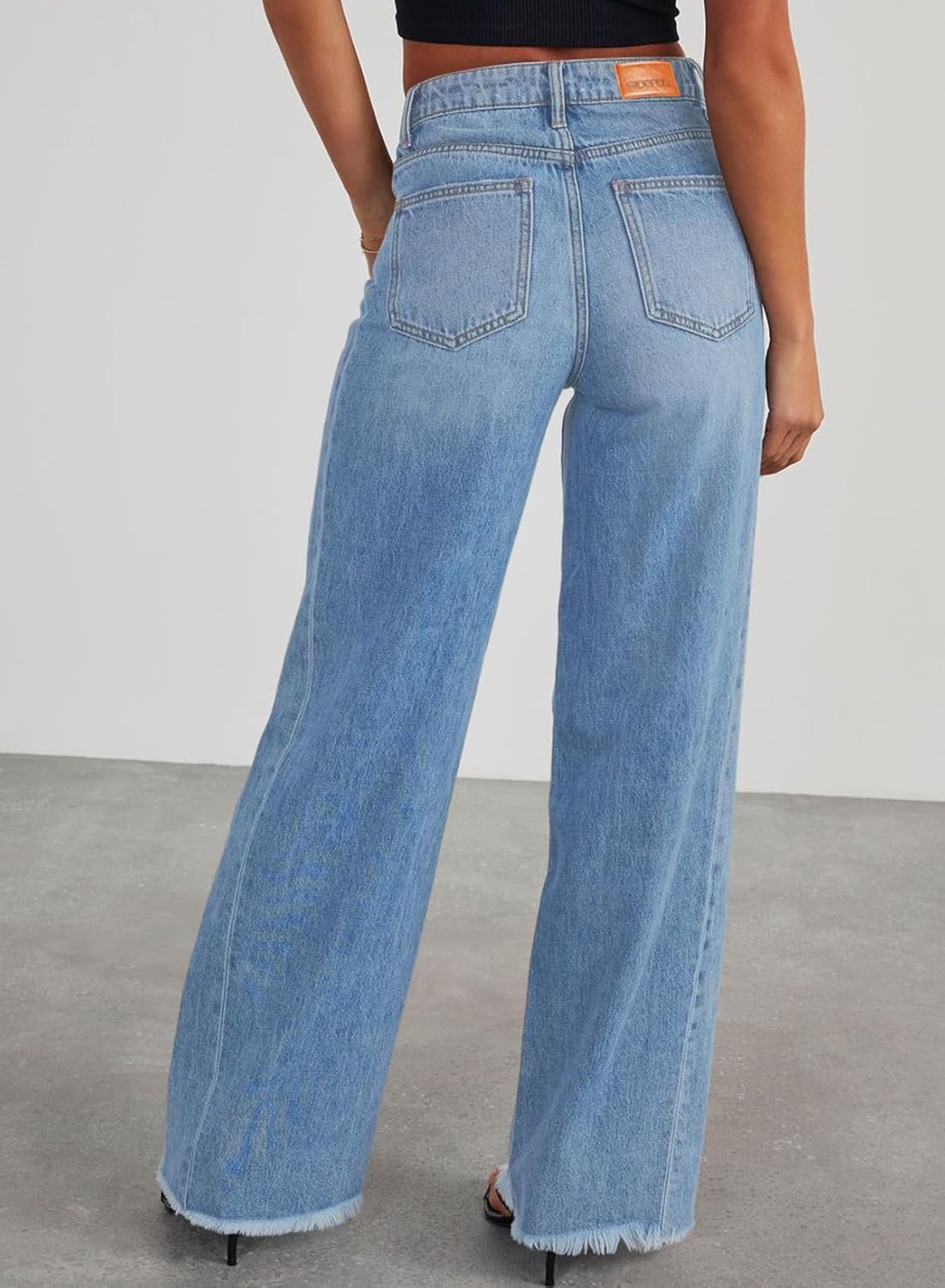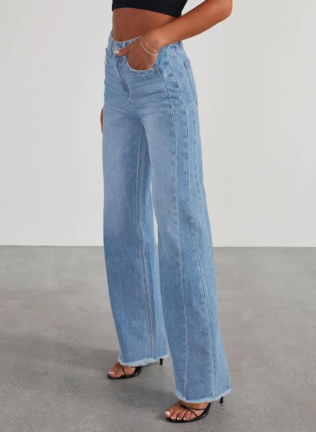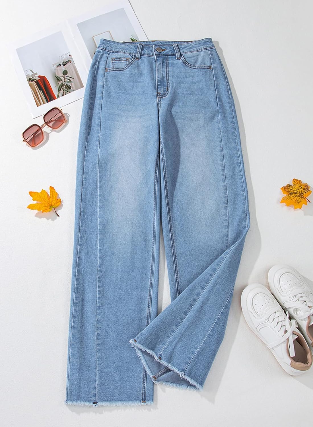 Sidefeel Women’s Wide Leg Jeans High Waisted Strechy Raw Hem Zimbaplatinum Denim Pants