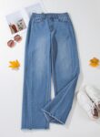 Sidefeel Women’s Wide Leg Jeans High Waisted Strechy Raw Hem Zimbaplatinum Denim Pants