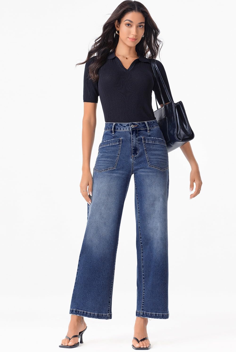 Sidefeel Women’s Wide Leg Jeans High Waisted Stretchy Jeans Straight Leg Loose Fit Zimbaplatinum Ankle Denim Pants