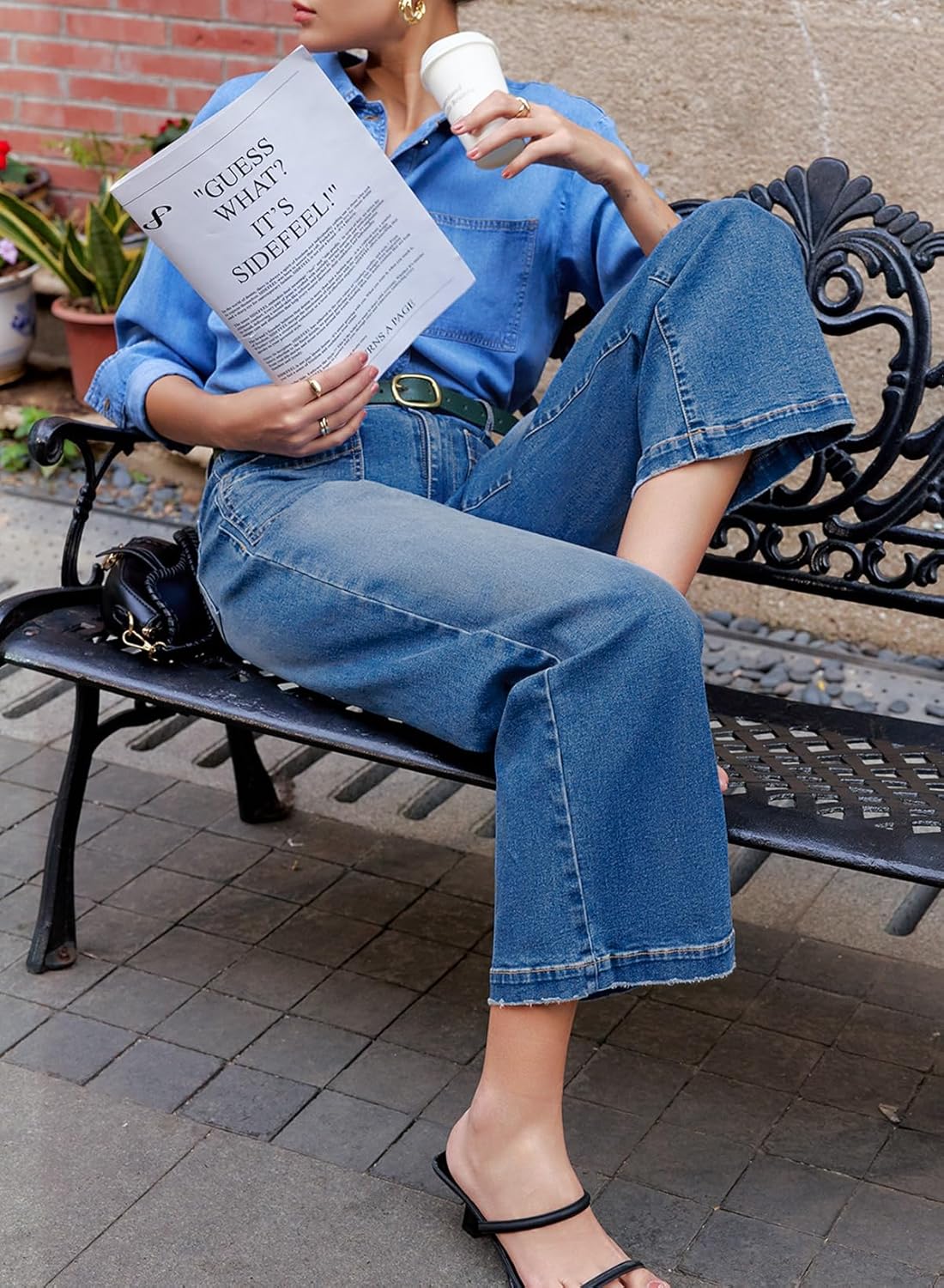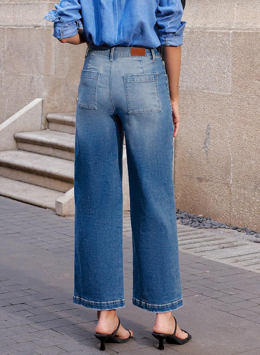 Sidefeel Women’s Wide Leg Jeans High Waisted Stretchy Jeans Straight Leg Loose Fit Zimbaplatinum Ankle Denim Pants
