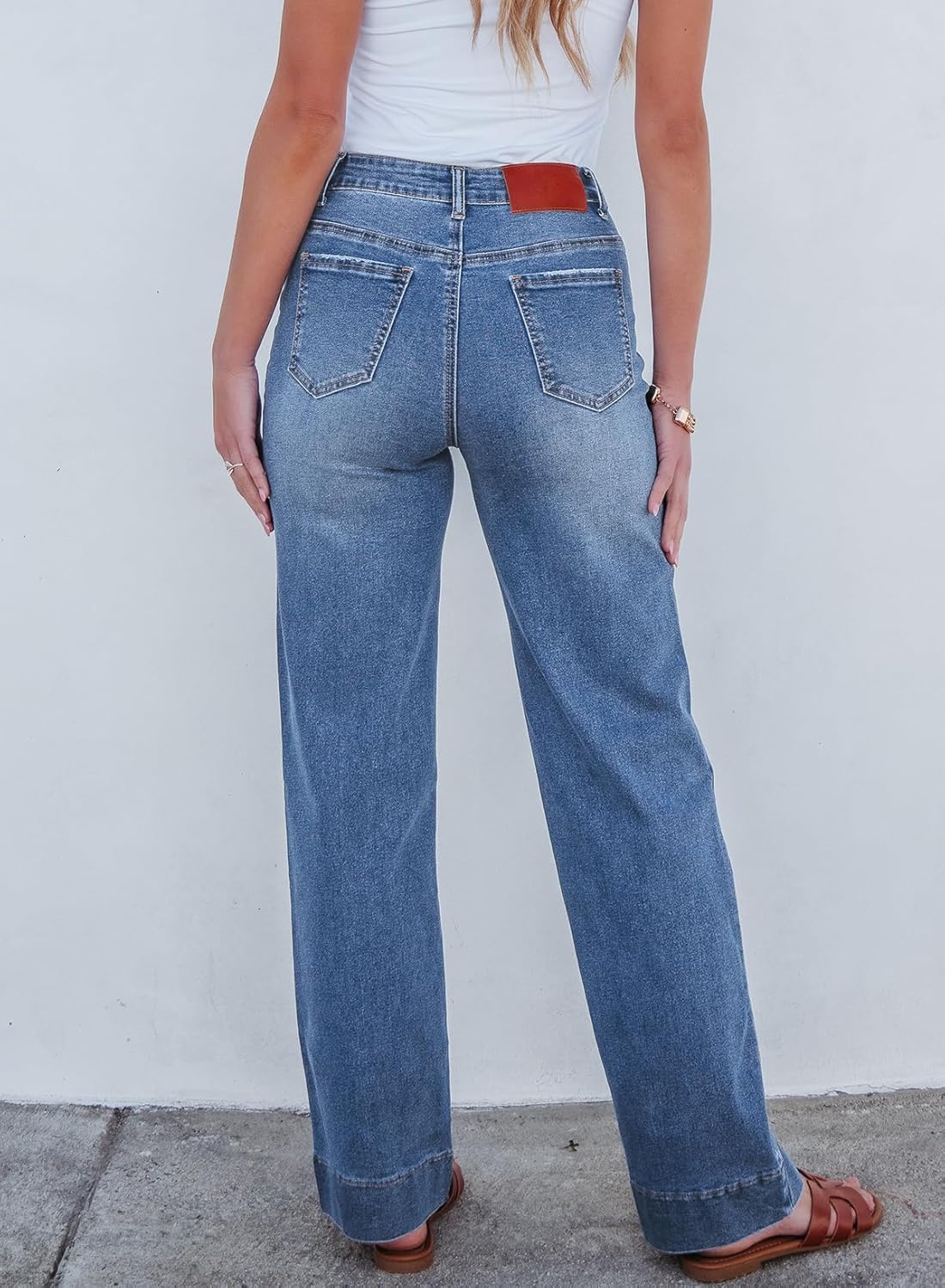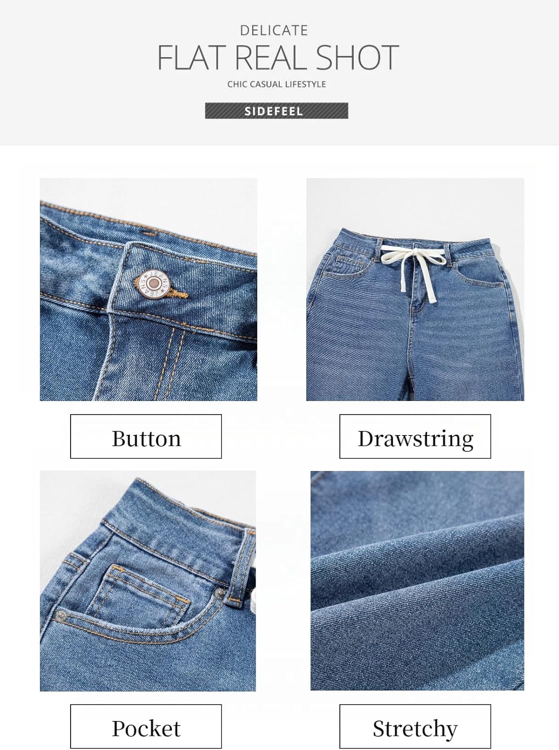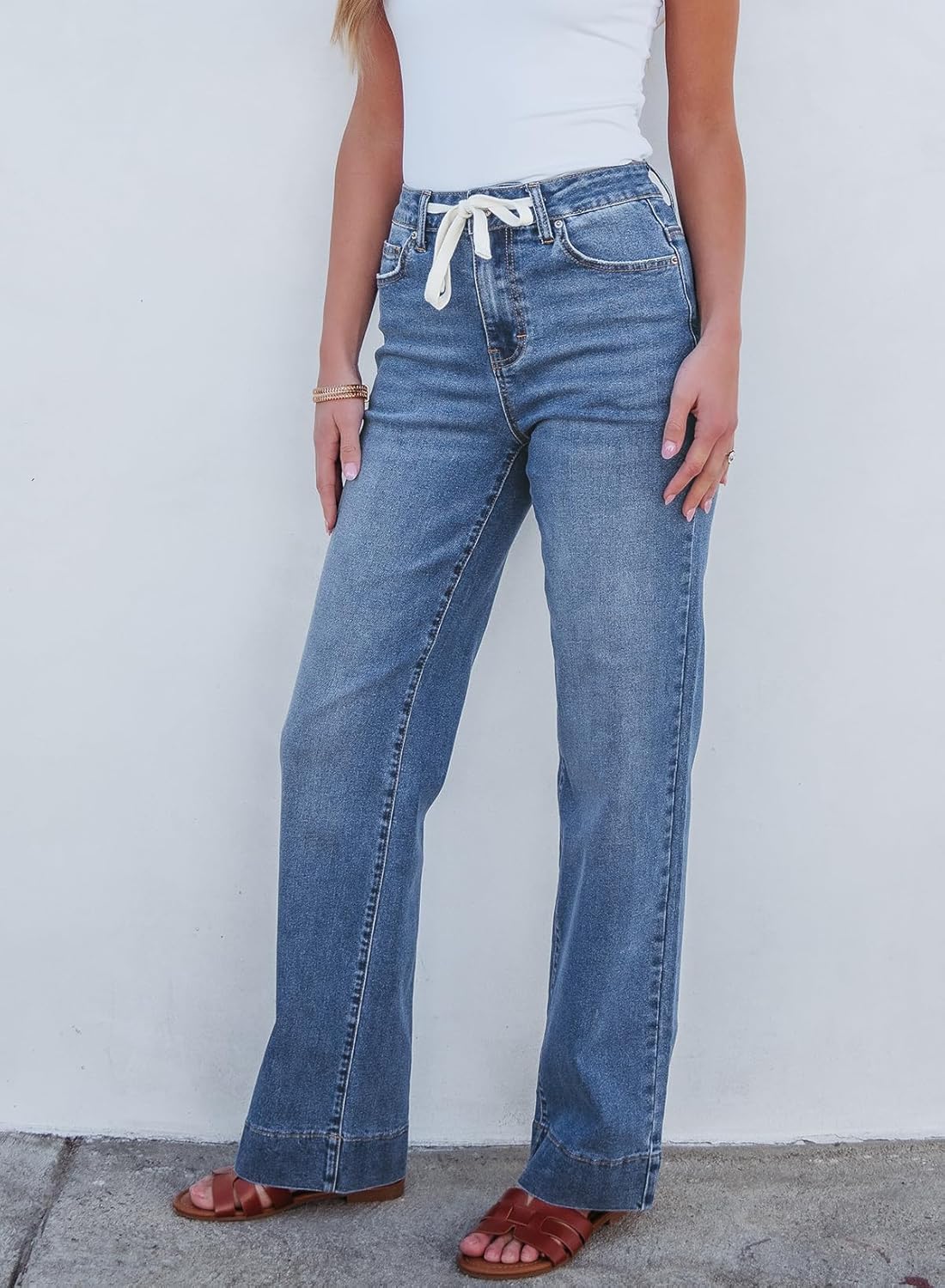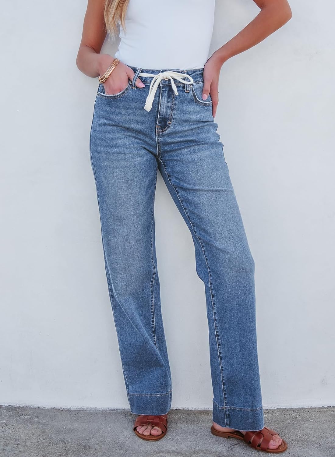 Sidefeel Women’s Wide Leg Jeans High Waisted Stretchy Straight Leg Baggy Drawstring Zimbaplatinum Denim Pants
