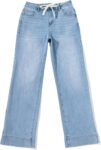 Sidefeel Women’s Wide Leg Jeans High Waisted Stretchy Straight Leg Baggy Drawstring Zimbaplatinum Denim Pants