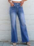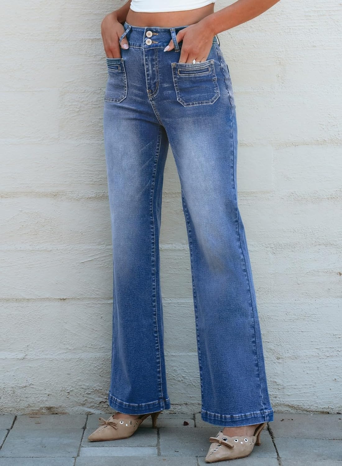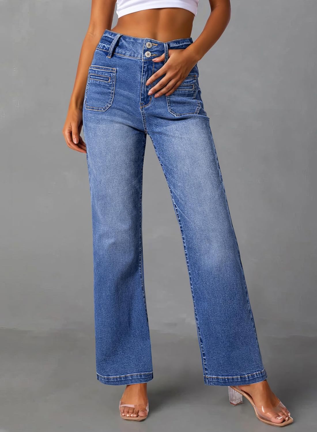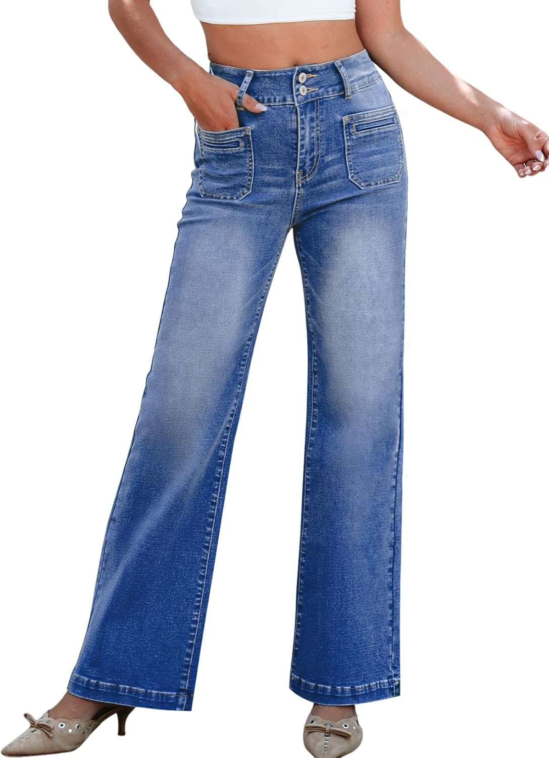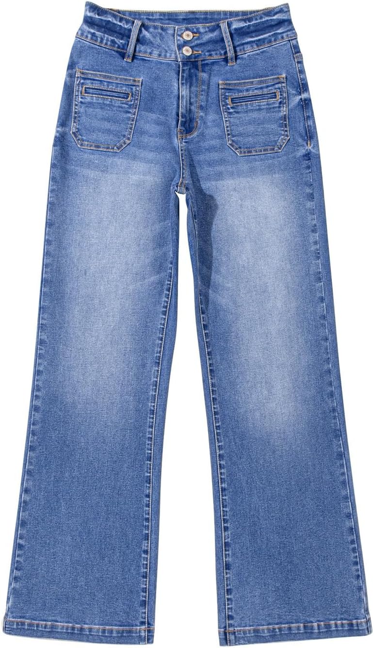 Sidefeel Women’s Wide Leg Jeans High Waisted Tummy Control Stretchy Pockets Front Zimbaplatinum Jeans