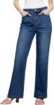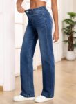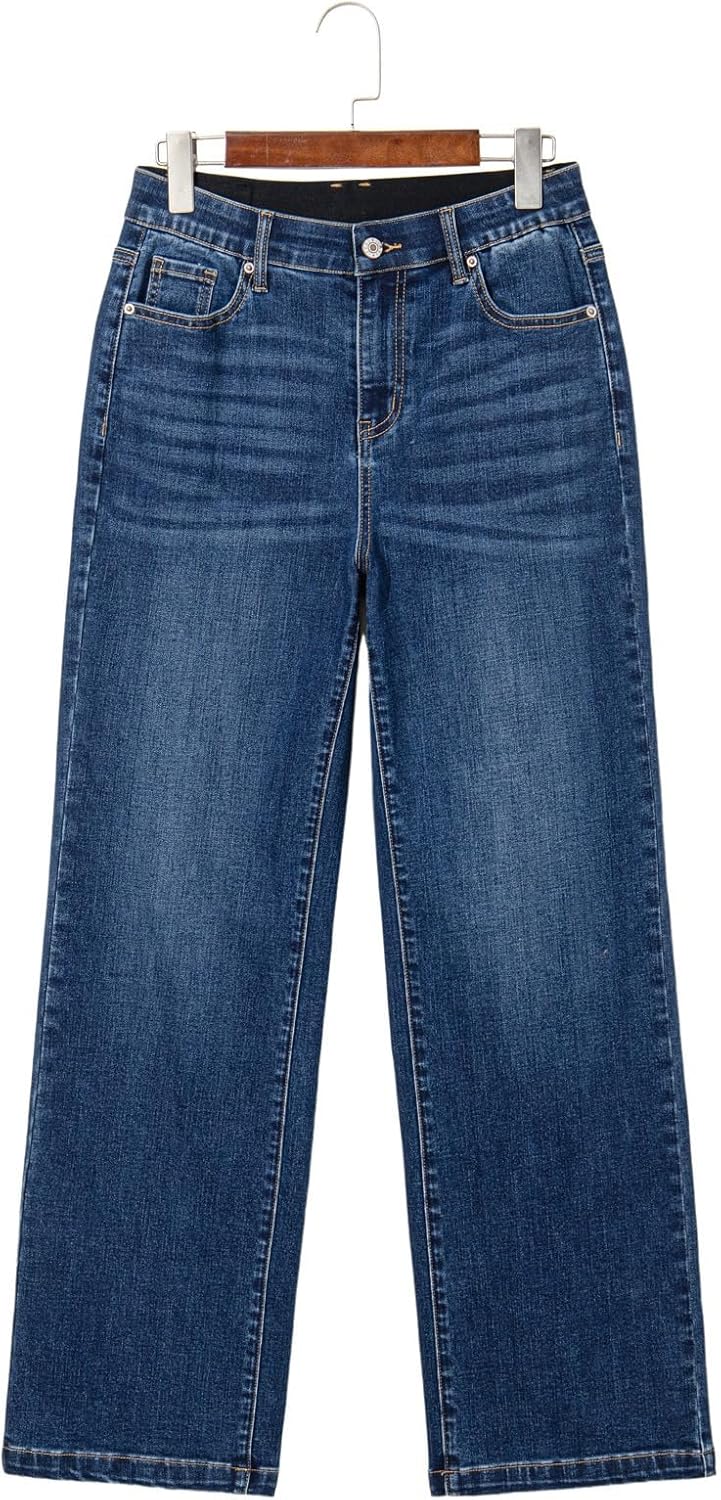 Sidefeel Women’s Wide Leg Jeans High Waisted Tummy Control Stretchy Straight Leg Elastic Waist Trendy Denim Pants