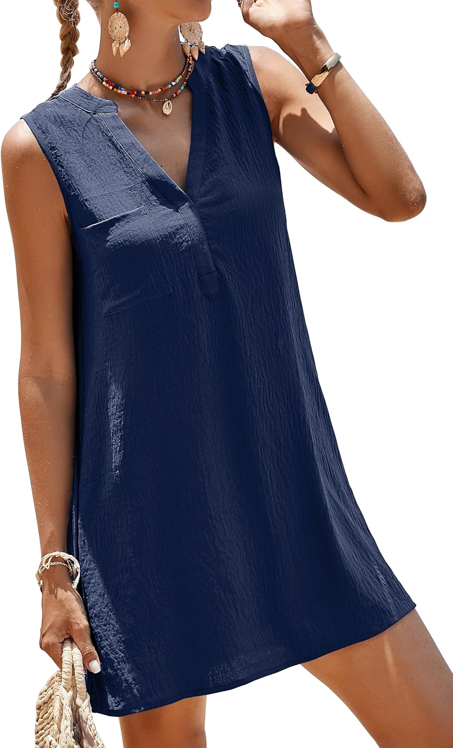SimpleFun Womens Swimsuit Coverup V-Neck Bathing Suit Cover Up Swimwear Sleeveless Beach Cover Ups Dress With Front Pockets
