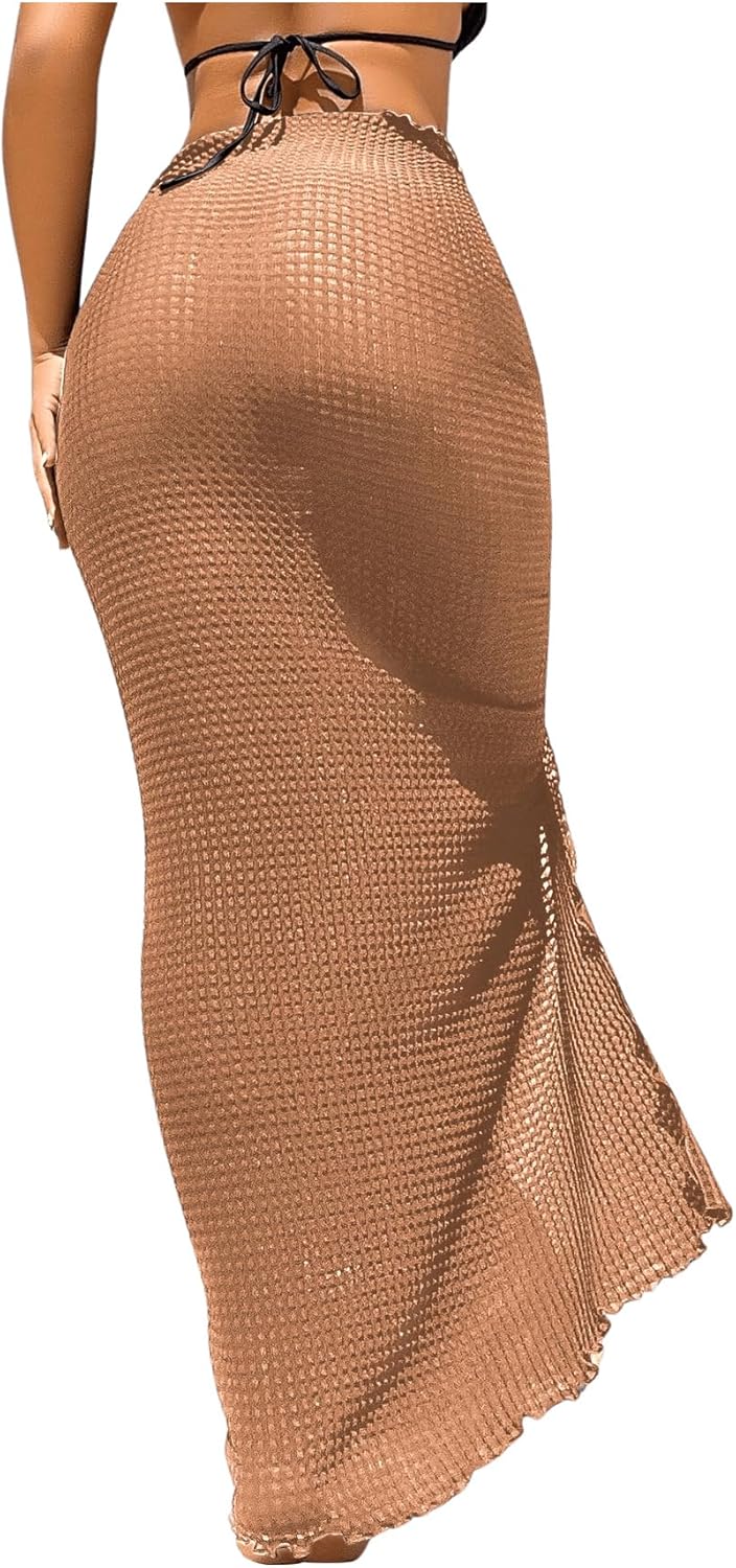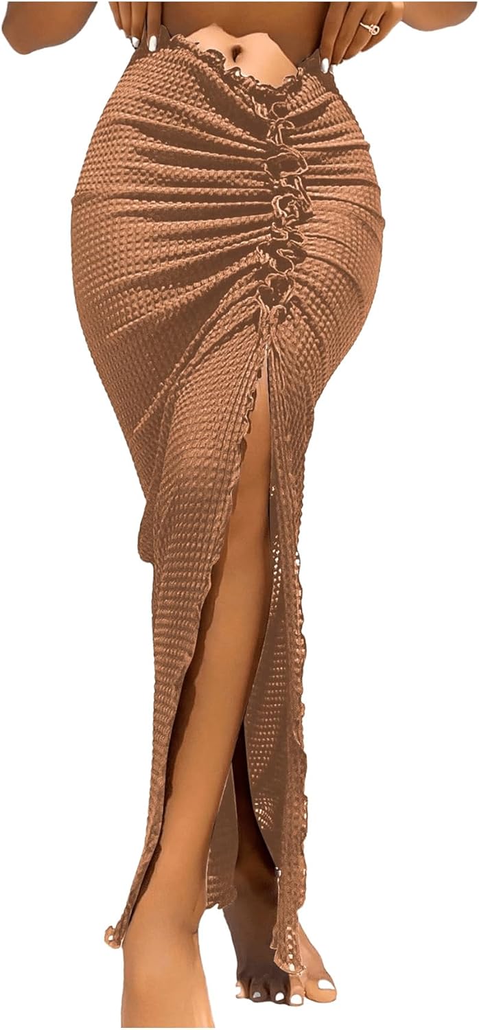 SOLY HUX Swim Cover Ups for Women Ruched Split Hem Cover Up Skirt Beach Bikini Swimwear