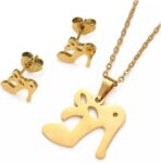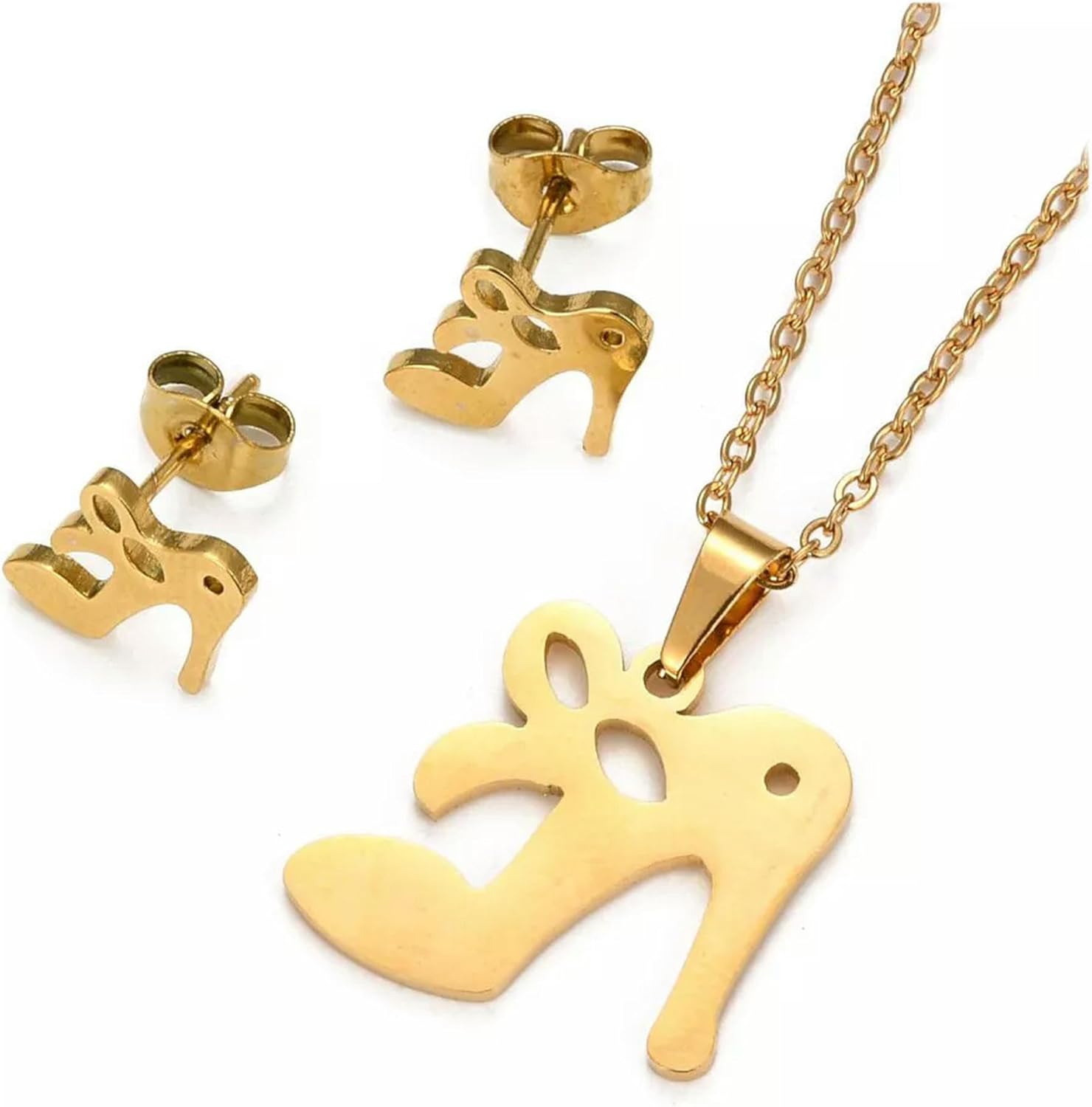 Stainless Steel Set Pendant Necklace Earrings High-Heeled Shoes 15.7″ 7mm Z811-default