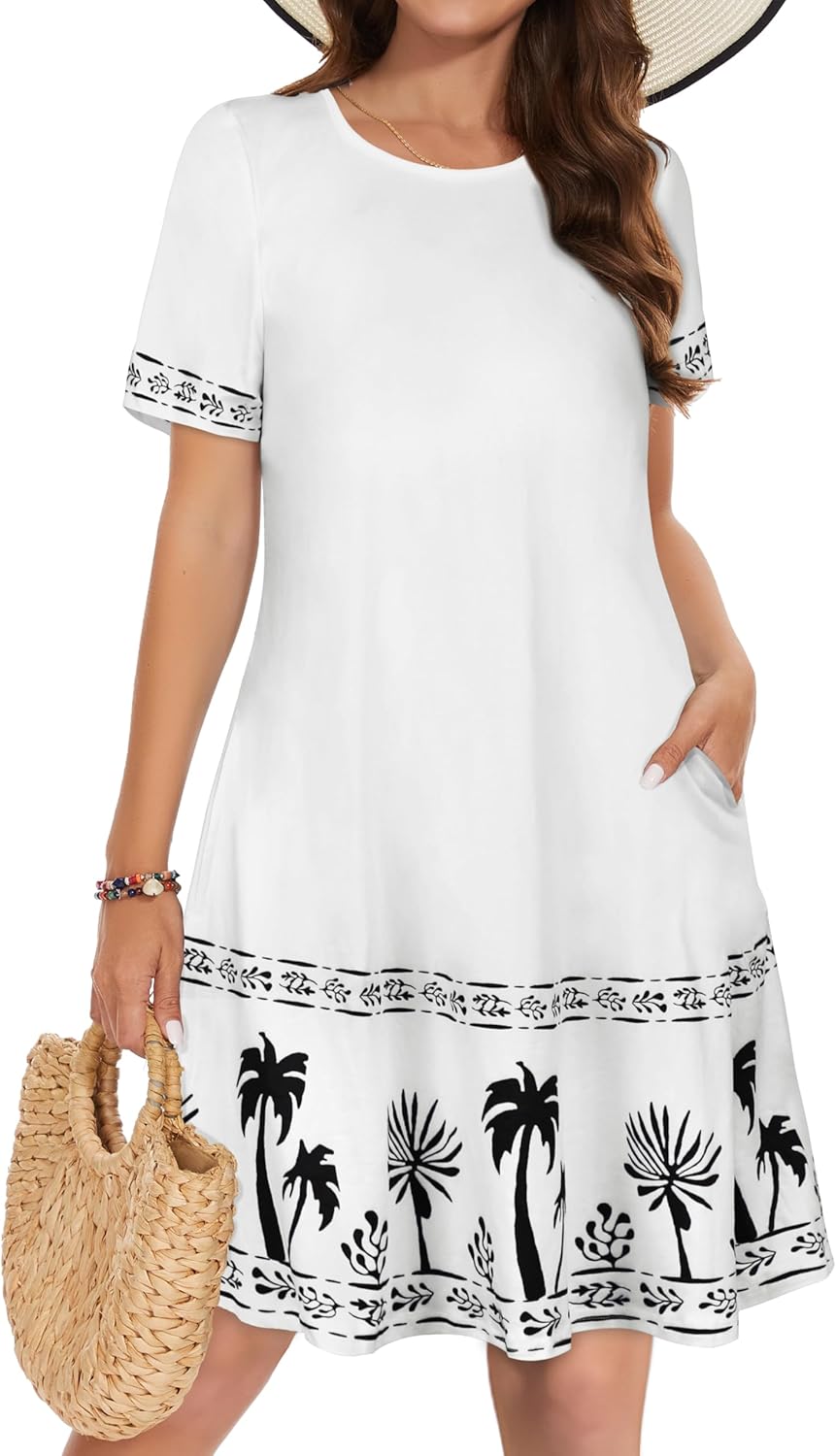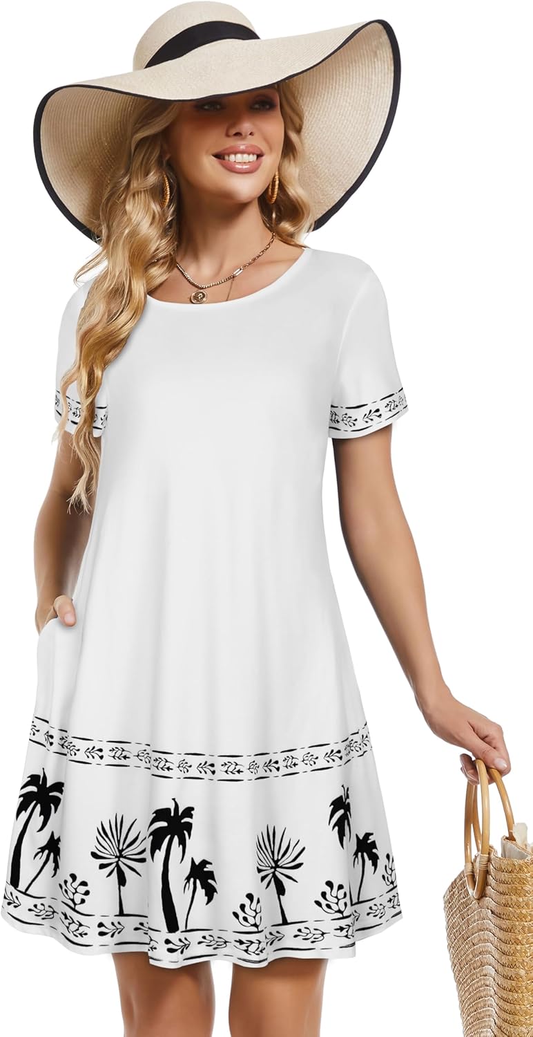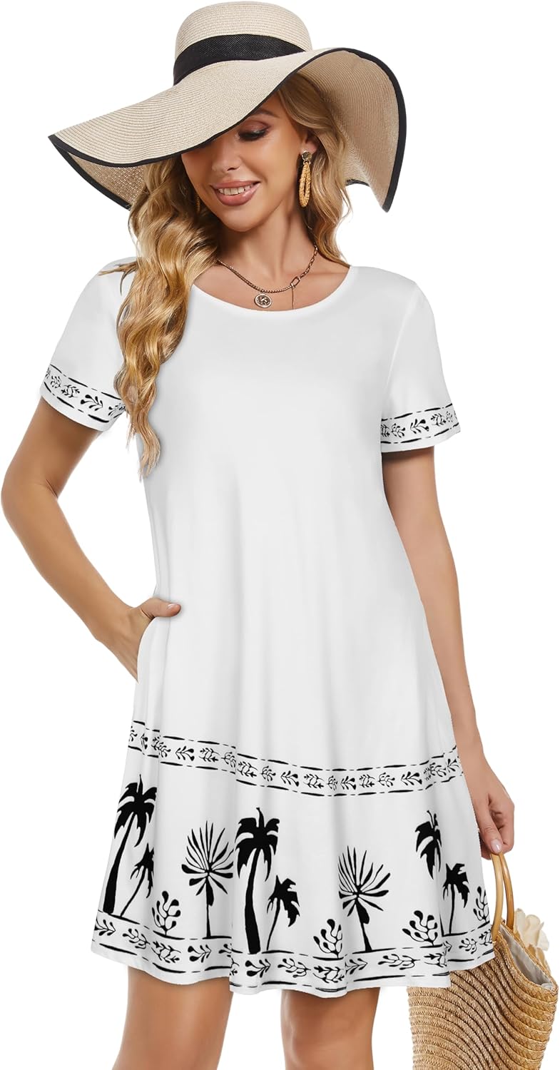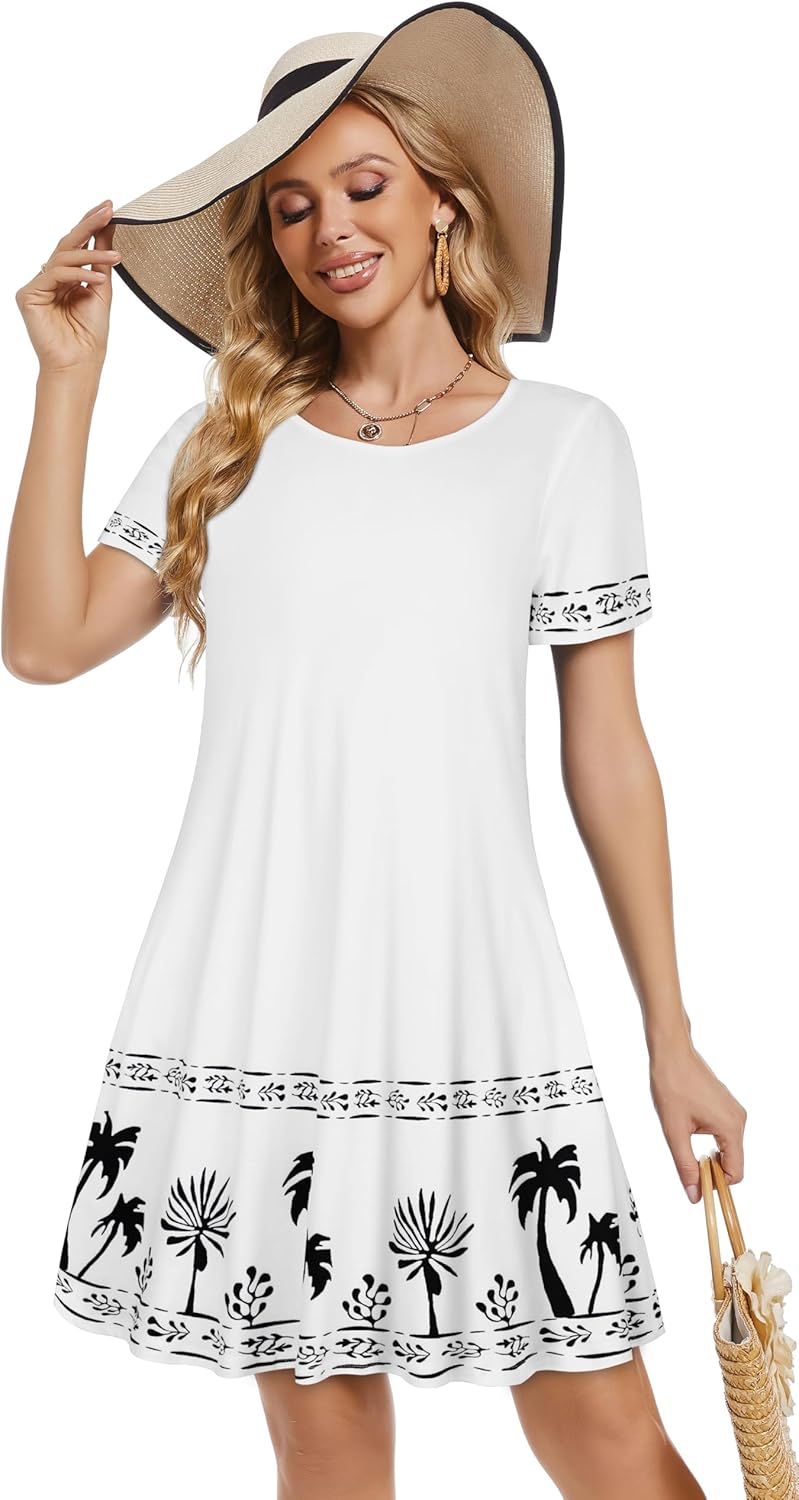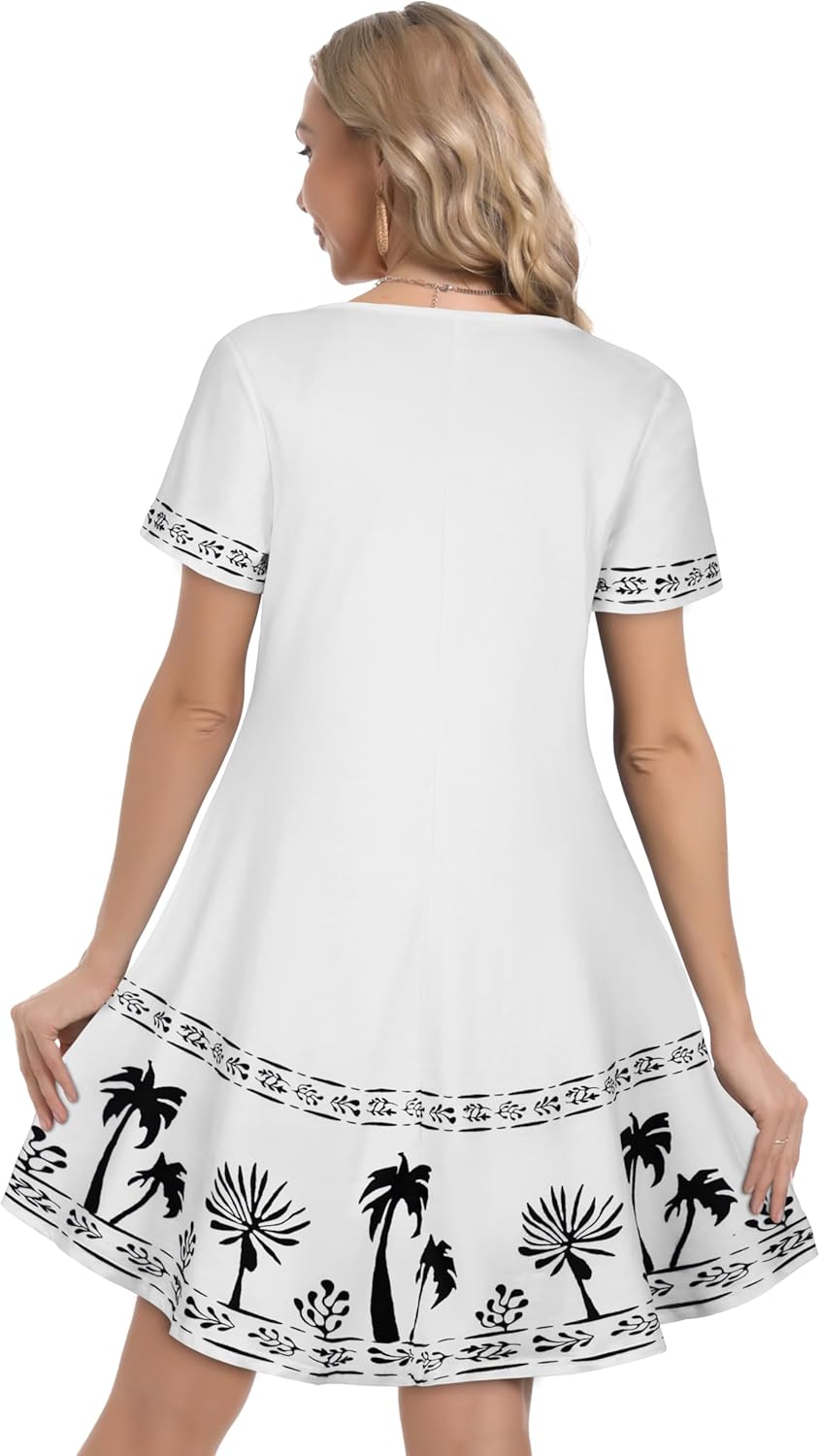 Women Summer Dress Tshirt Beach Sundress Casual Flowy Swing Short Sleeve Tunic