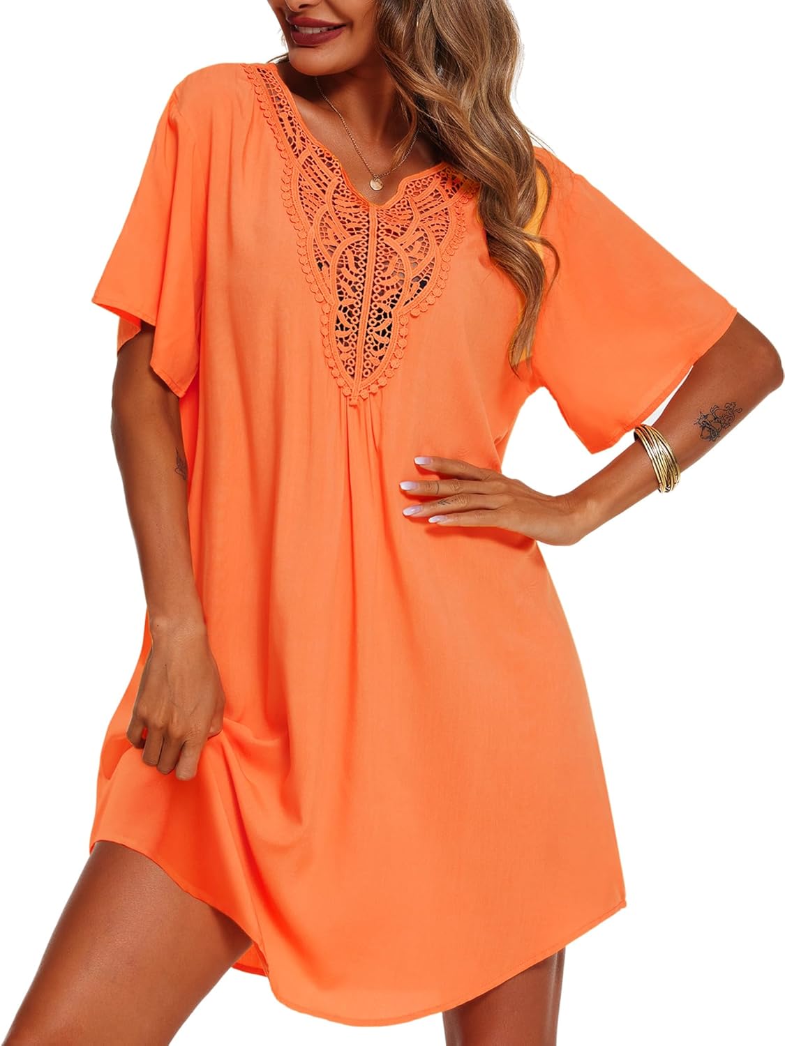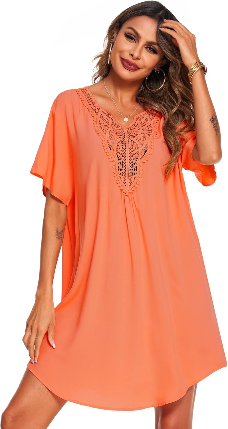 Supnier Womens Bathing Suit Cover Ups Lace Crochet V Neck Summer Beach Swimsuit Coverup Dress