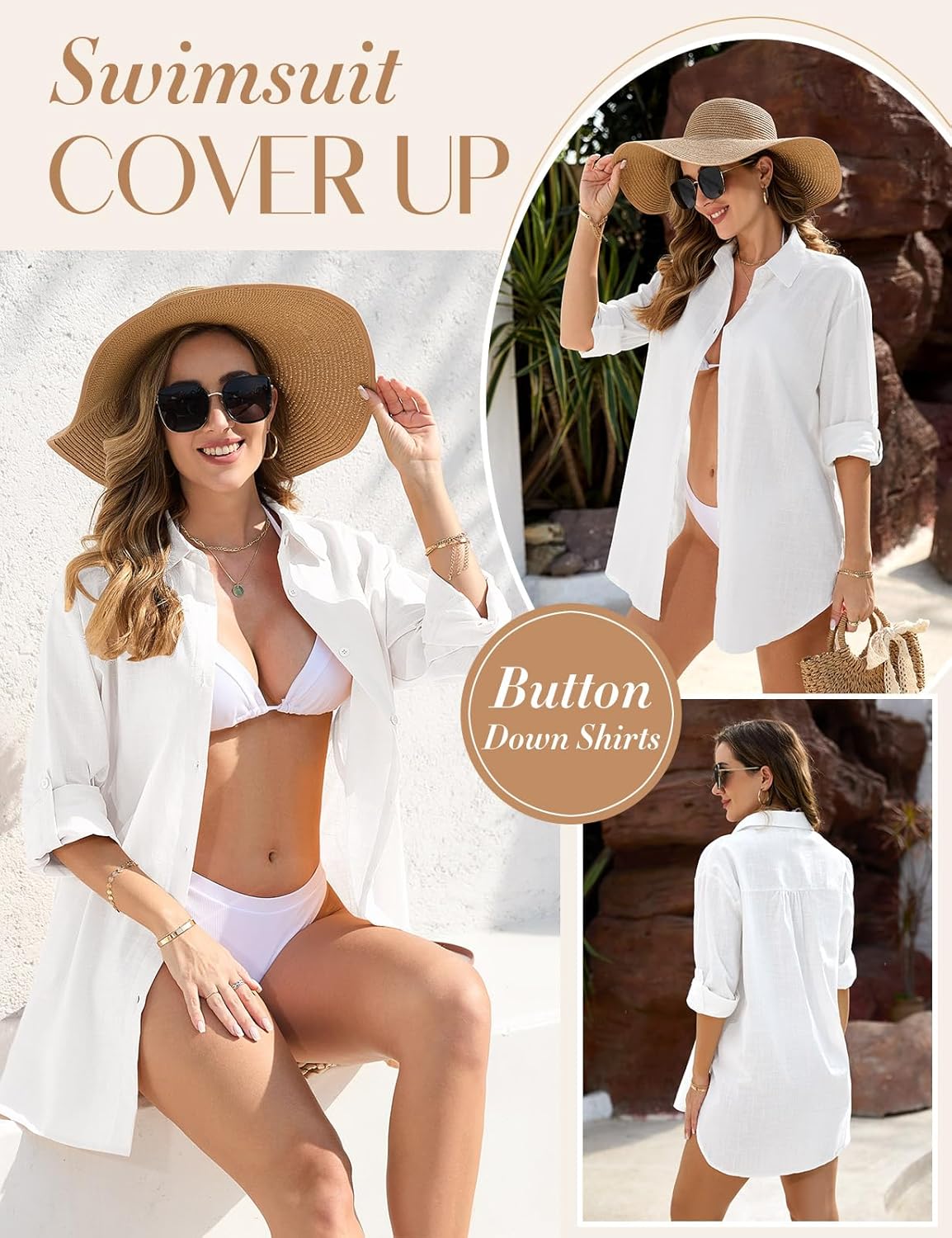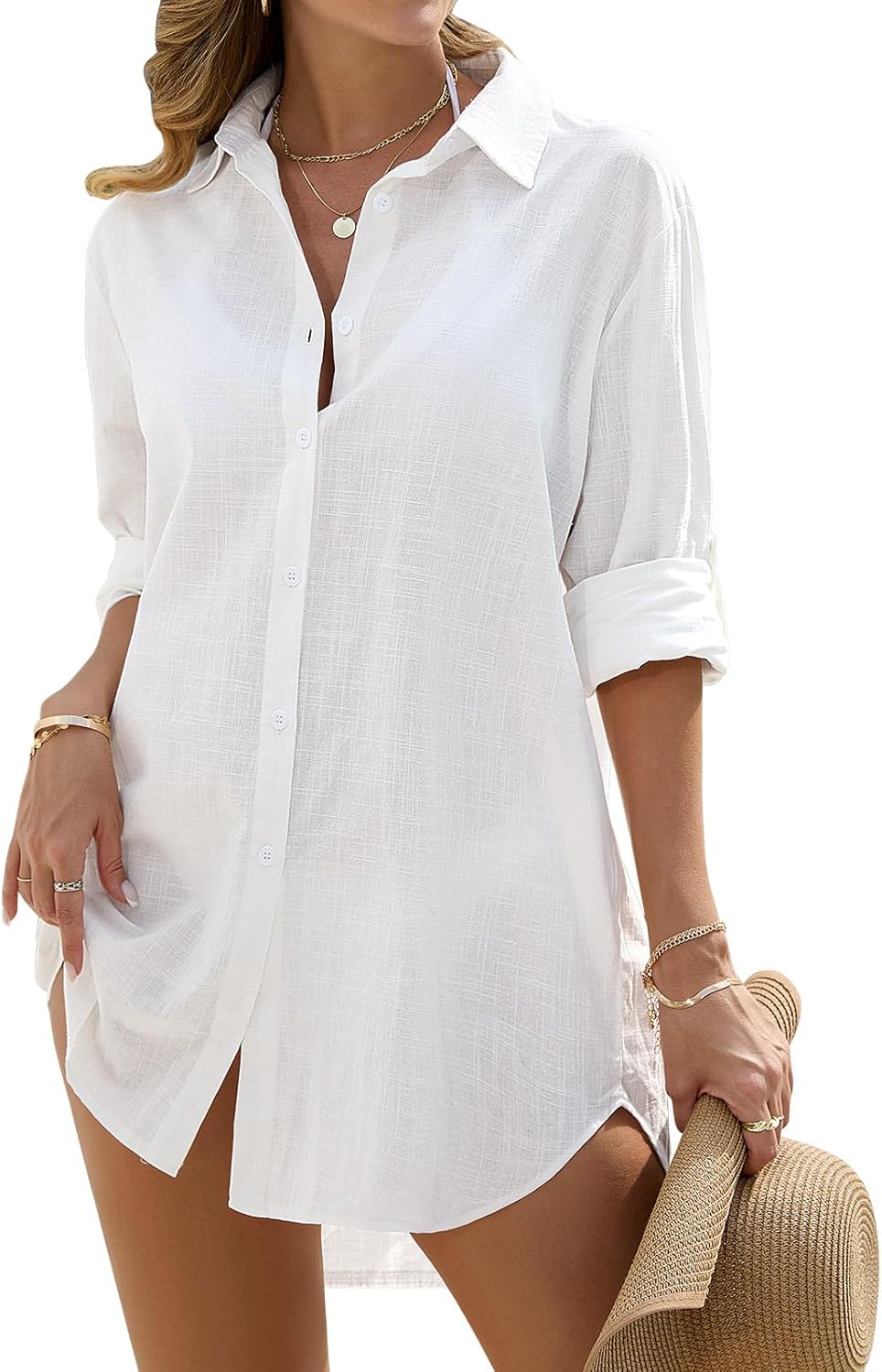 Swimsuit Coverup for Women Bathing Suit Cover Up Beach Shirt Casual V Neck Button Down Shirt Dress Bikini Coverups