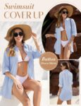 Swimsuit Coverup for Women Bathing Suit Cover Up Beach Shirt Casual V Neck Button Down Shirt Dress Bikini Coverups