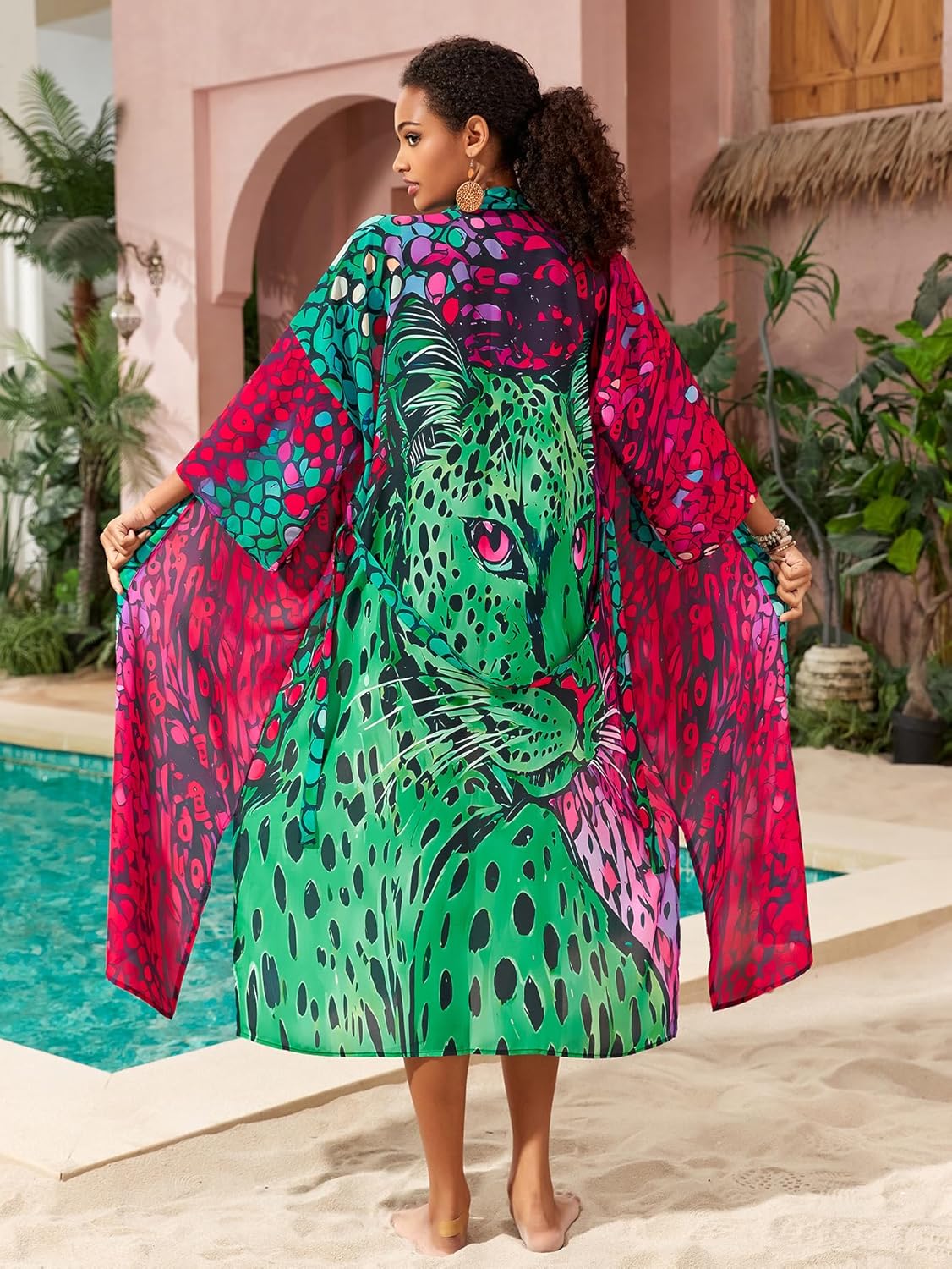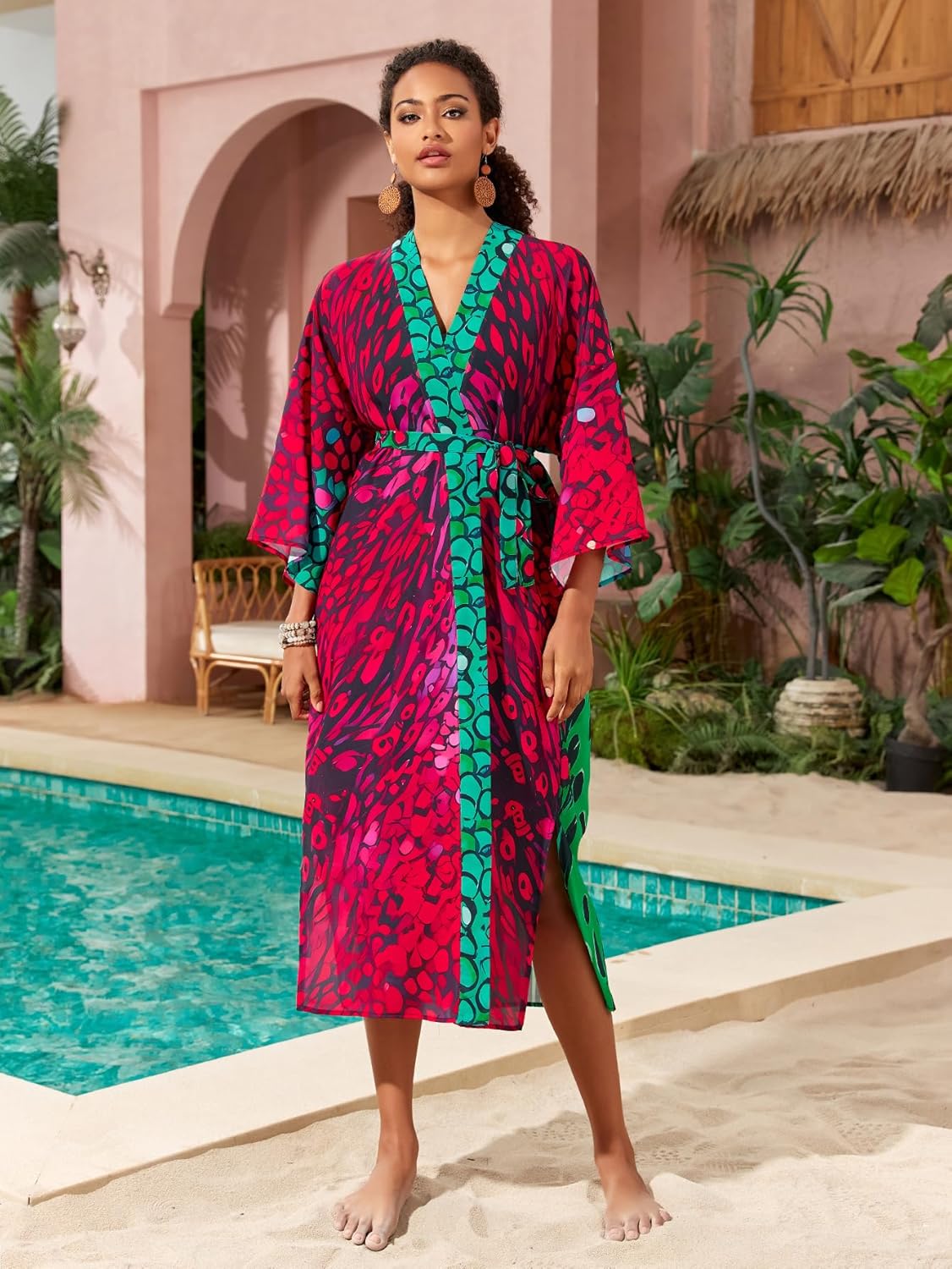 Swimsuit Coverups for Women Beach Kimonos Bikini Cover Ups for Swimwear Printed Flowy Summer Vacation Boho Bathing Suit