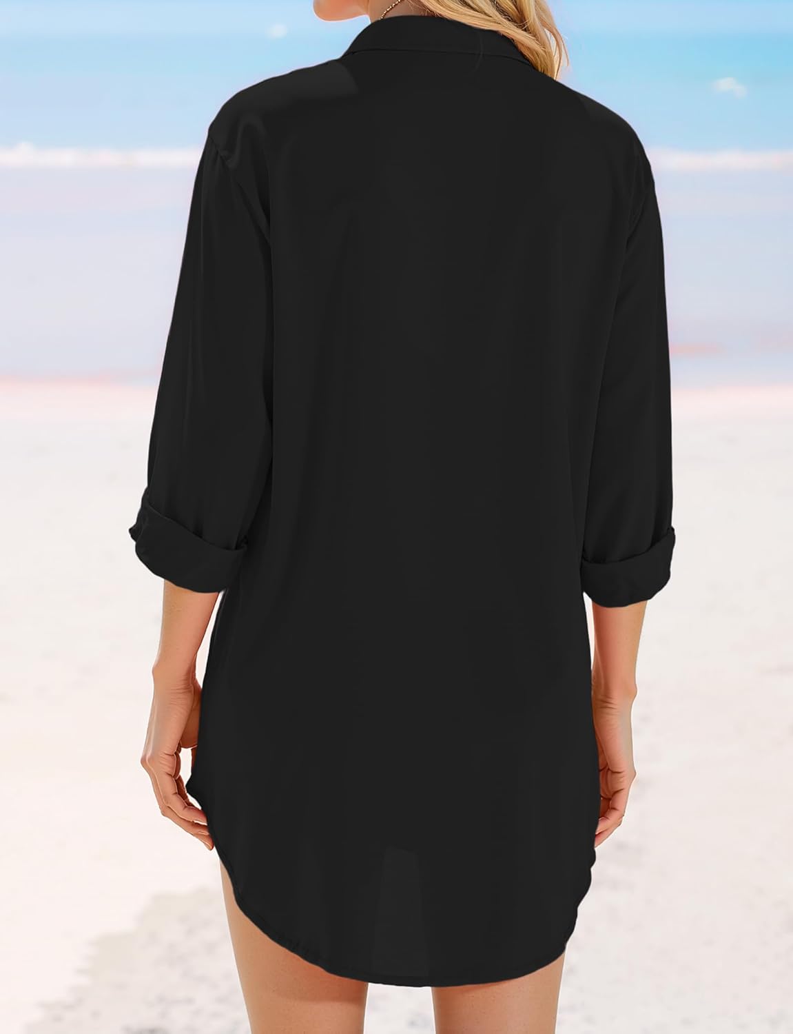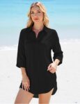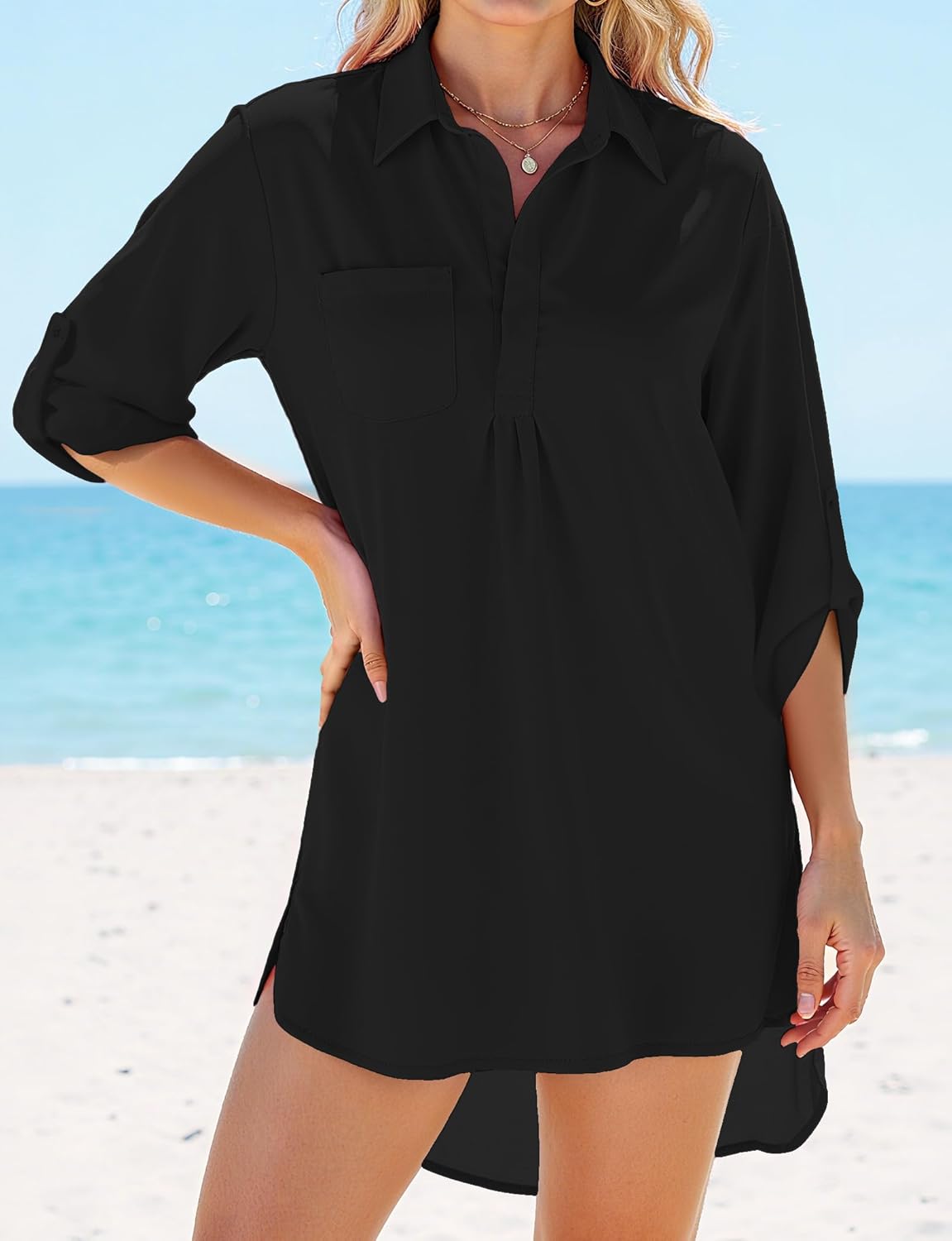 Swimsuit Coverups for Women, V Neck Bathing Suits Cover Ups for Women, 3/4 Sleeve Bikini Cover Up Beach Dress