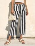 Tankaneo Womens Cropped Striped Jeans Casual High Waisted Stretchy Straight Leg Denim Pants with Pockets
