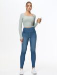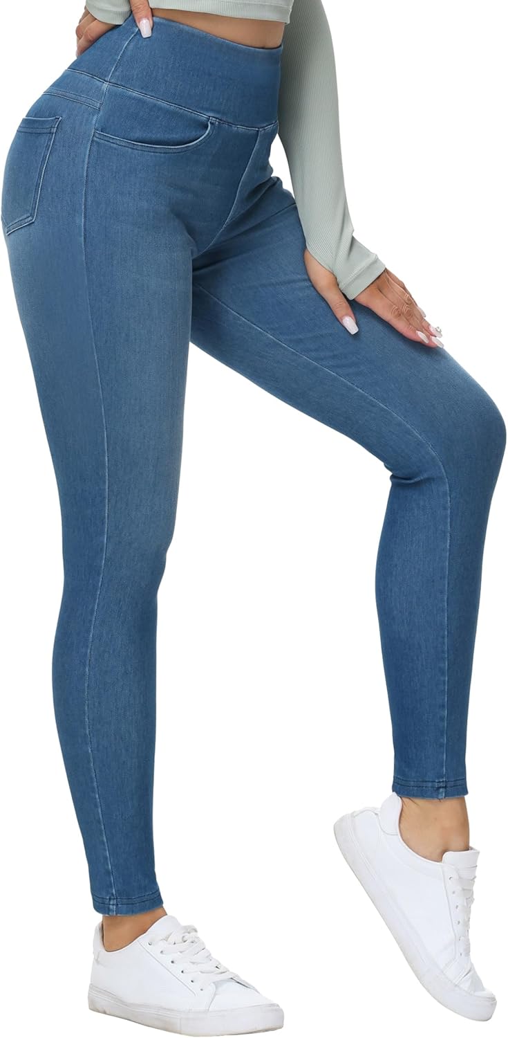 THE GYM PEOPLE Women’s High Waisted Jeggings Pants Stretchy Tummy Control Skinny Jean Leggings with Pockets