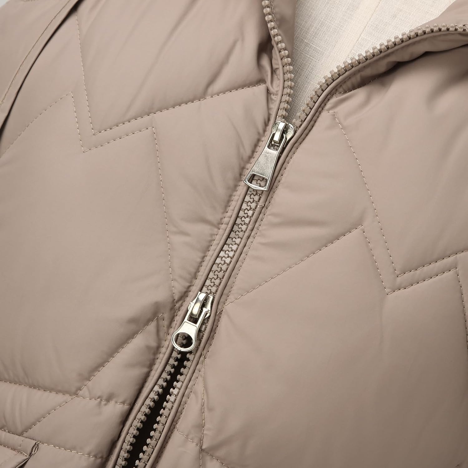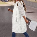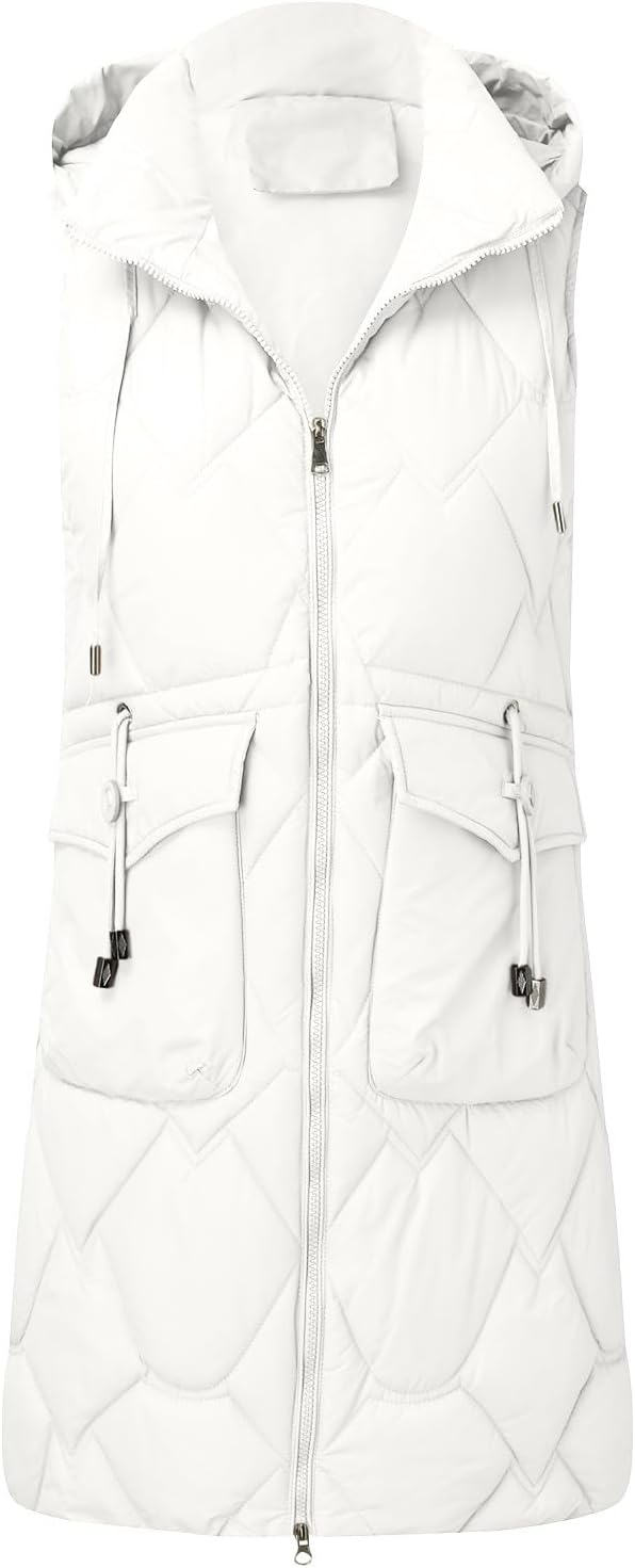 Upliftjoys Women’s Long Puffer Vest Quilted Hood & Button Closure Gettoreach Solid Color Sleeveless Hooded Winter Wear