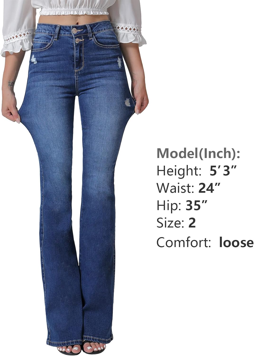 VIPONES Flare Jeans for Women High Waist Stretch Slimming Destoryed Wide Leg