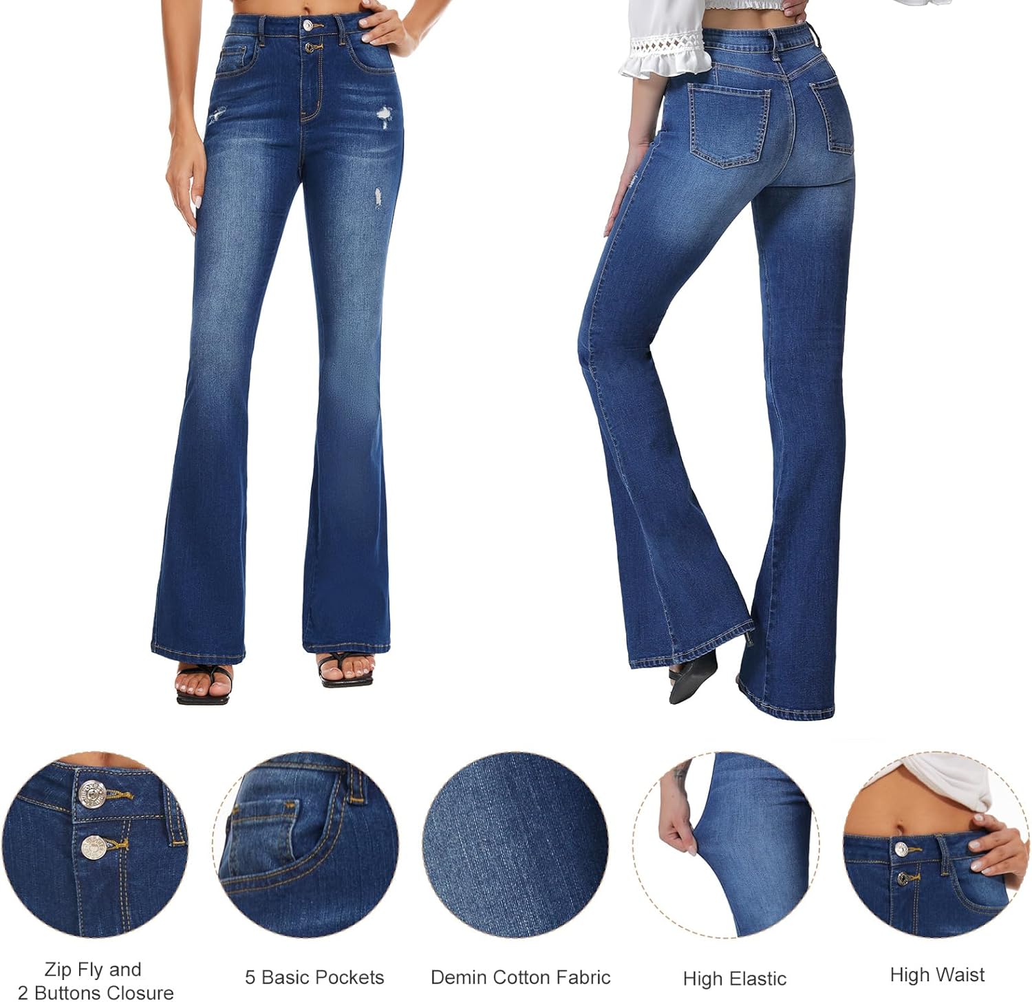 High-quality denim fabric, soft, breathable, stretchy, and good drape!Ultra soft bell bottom denim flare jeans make a great addition to your loungewear collection. Button highlight your waistline