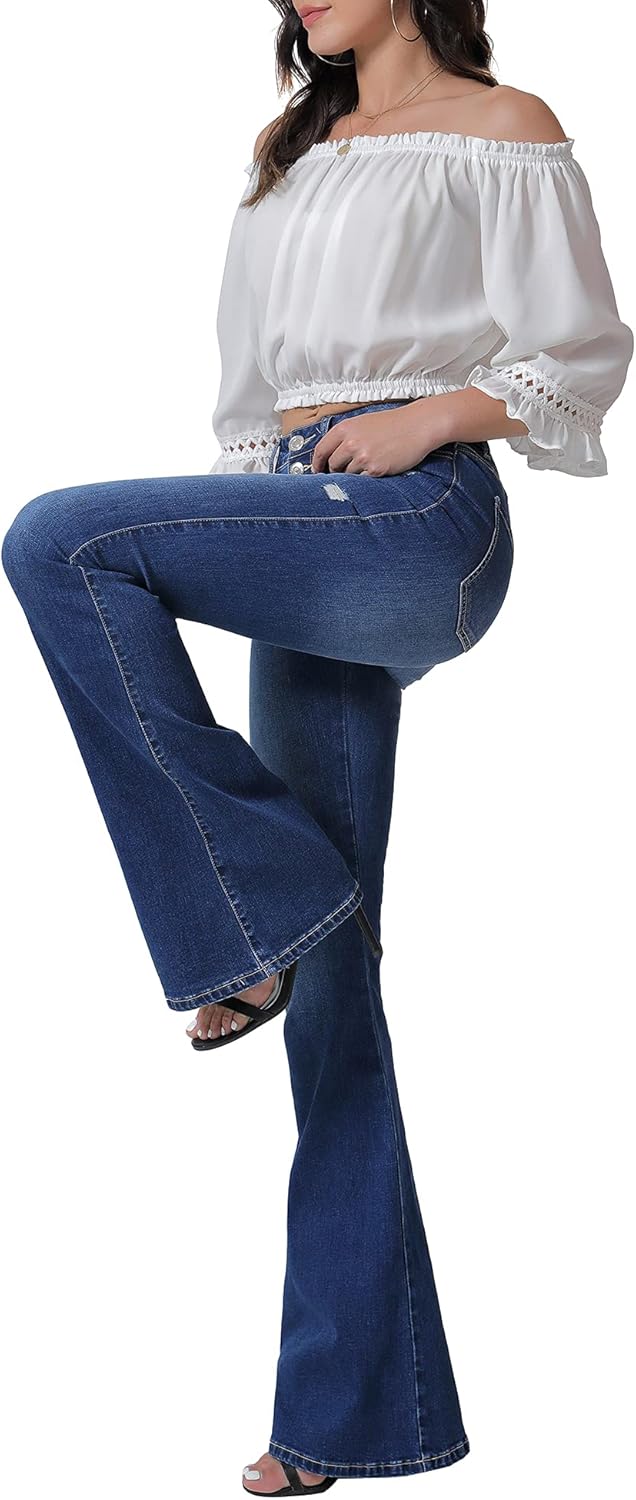 VIPONES Womens High Waist Stretchy Flare Jeans