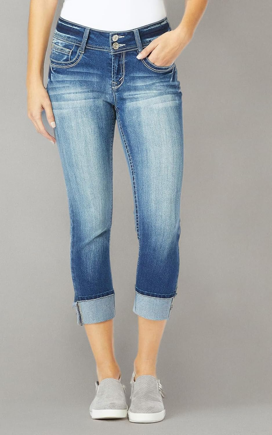 Wallflower capris for women in Insta Stretch denim is our stretchiest ever, with outstanding recovery that keeps your wall flower jeans crop jeans looking amazing all day. The premium feel and endless holding power will make these your new favorite womens jeans cropped. Complete your look with our curve enhancing, mid rise women jeans stretch cropped jeans for women that flatter your legs. The contoured stretchy jeans for women mid-rise waistband and roomier hips and thighs eliminate gapping so you can move with confidence. Maintain your cool and casual style with womens cropped jeans that flatter every figure. Classic double button closure detail and embellished back pockets on stretch wallflower jeans crop jeans for women that go with everything. Complete your 90s, y2k, festival and everyday looks with jeans for women trendy. Look and feel amazing, from size 0 to 24. Find standard and plus size crop jeans, in a 23.5” cropped inseam. Jeans women made for Every Body. Period. Mid rise capris for women in always in style denim fabric. Join our journey to more eco-friendly processes for more sustainable garments. By 2026, we at wallflower aim to source 50% of our cotton through the Better Cotton program—supporting water-efficient farming practices that benefit both farmers and the environment.