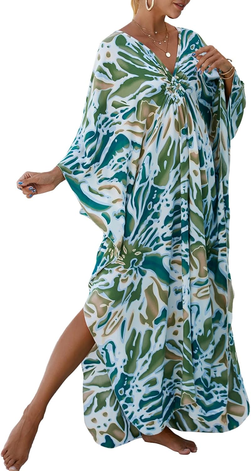 Women Animal Print Kaftan Dresses Plus Size Swimsuit Coverup 2025 Summer Bathing Suit Caftan Loungewear Beach Dress