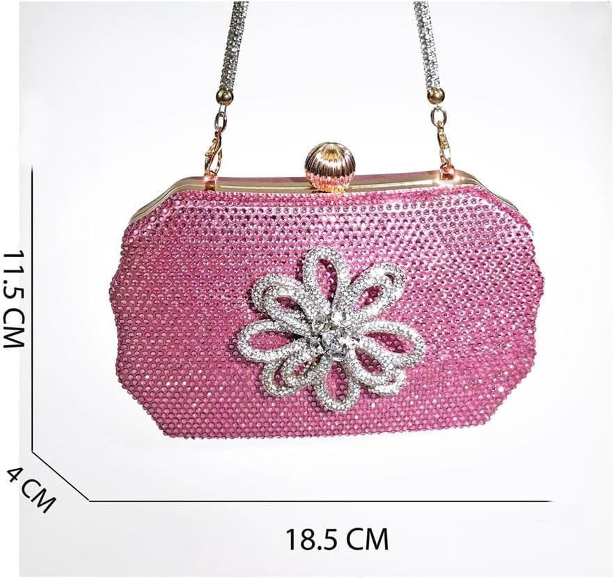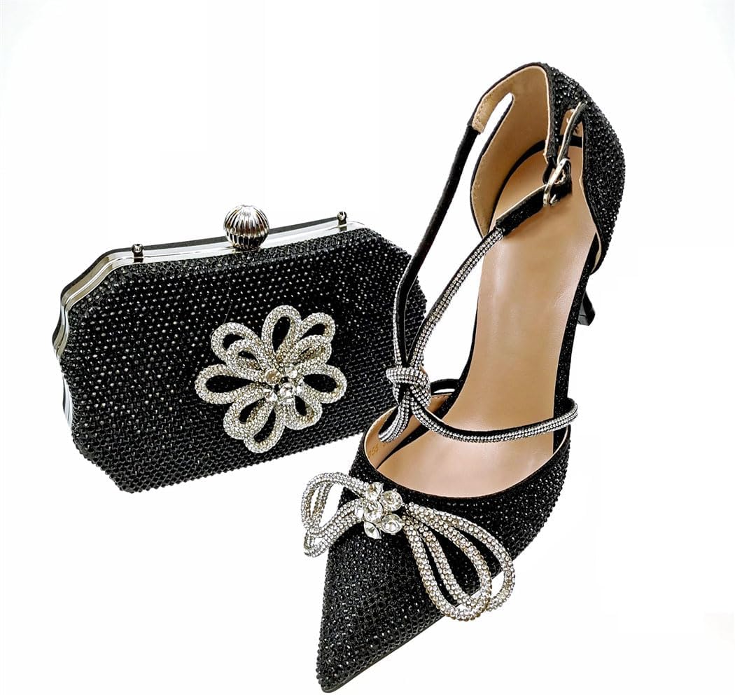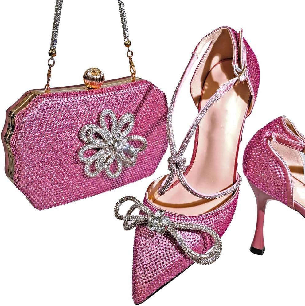 Women Handmade Flower Decoration Shoes and Bag Set for Party, Full Diamond Detail
