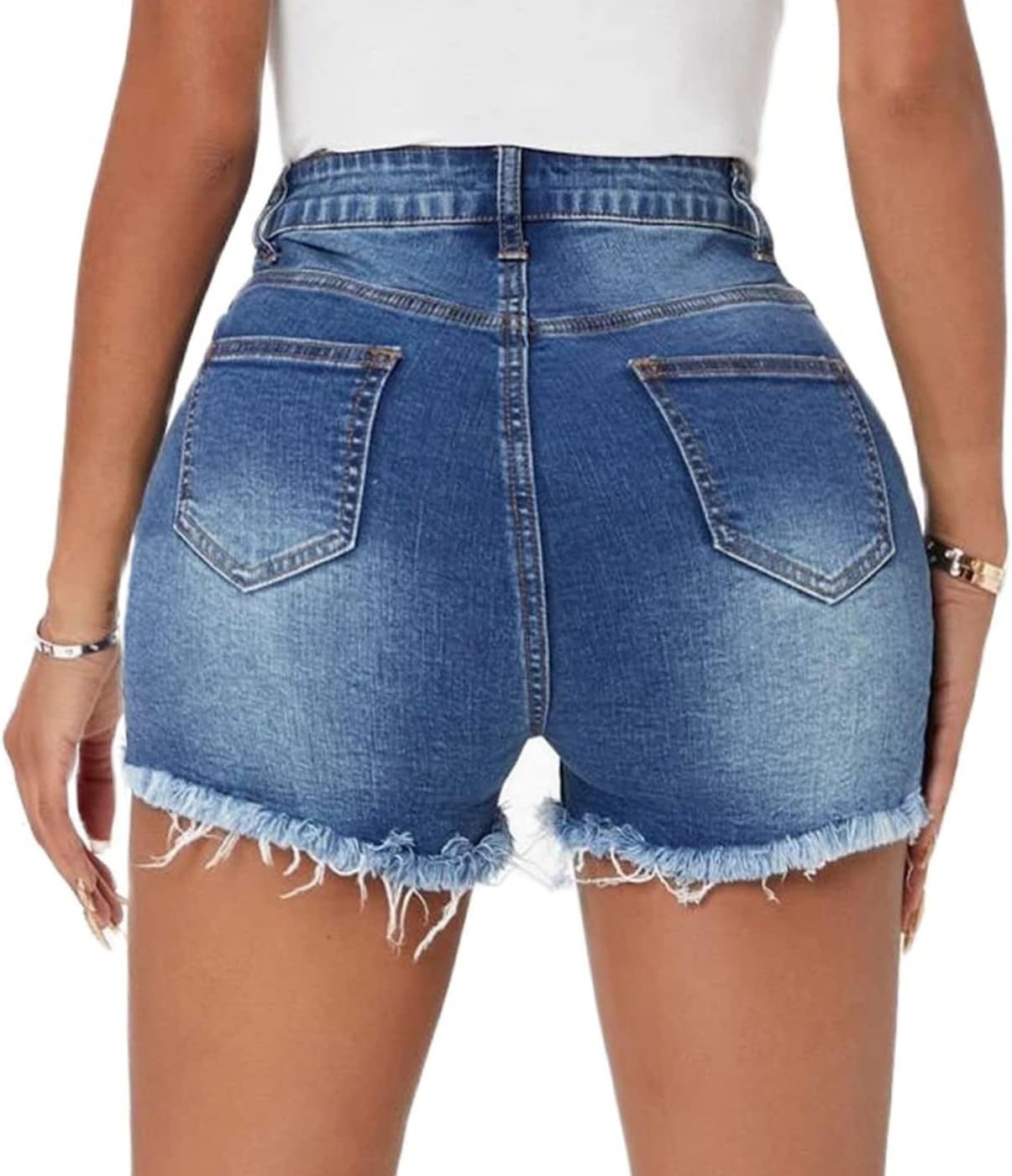 Women Jean shorts,with classic functional 5 pockets, zip fly & button closure Stylish ripped jean shorts, features high waisted fit, frayed cut off hemline and stretchy slim fitted.Casual yet chic with T-shirts or tank top in summerThe soft and stretchy fabrication allows for the best comfortable and accommodating fit ,ladies and teen girlsPerfectly show off your sexy buttocks and shape your curves perfectlyFollowing one of the hottest trends, the high rise fit on these cutoffs is ultra-flattering and easy to styleStretchy summer beach denim hot shorts for women, perfect for casual wear, daily wear, streetwear, dating, going out, night out, beach, vacation and so on.These women summer jean shorts run true to standard US sizes
