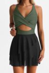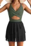 Women One Piece Swim Dress Tummy Control Mesh Swimsuits Wrap Sarong Bathing Suit V Neck Slimming Swimwear